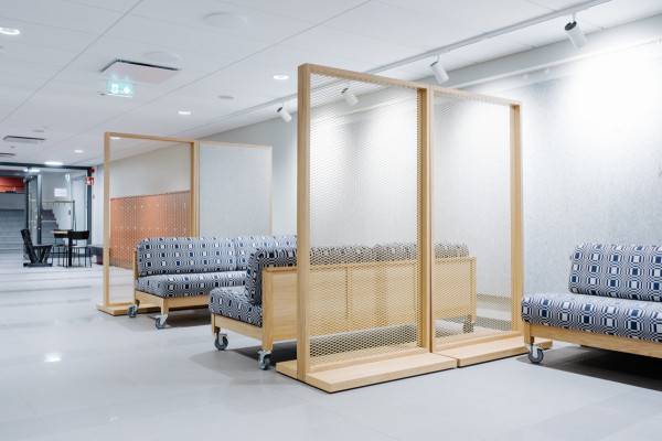 Opiskelijoiden kohtaamisalueille toimitettiin Creadeckin Casette-sohvia, jotka tukevat vapaamuotoista yhdessäoloa ja keskustelua. Tilojen jäsentämisessä ja työskentelyrauhaa vaativissa tilanteissa hyödynnettiin Creadeck Floor Screen -seinäkkeitä, joita käytettiin sekä kevyinä verkkorakenteina että verhoiltuina, ääntä vaimentavina elementteinä.