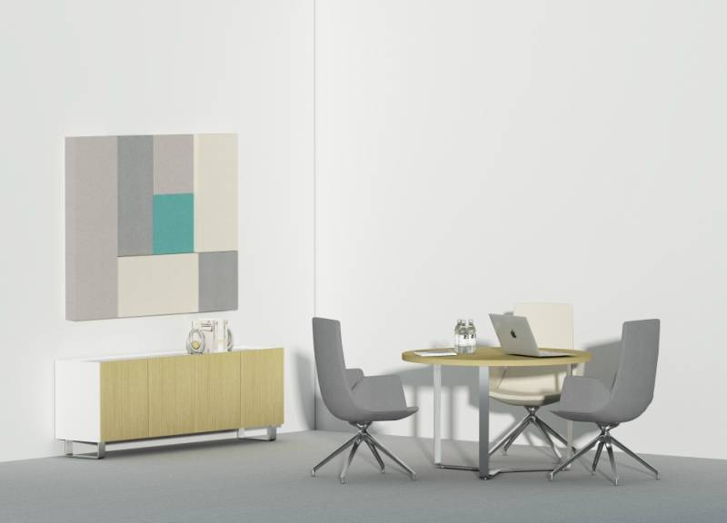 PLANA neuvottelupöydän kansi on massiivinen ja paksu: matalapainelaminaattikannen paksuus 36 mm (2 mm ABS-reunalla), viilukannen paksuus 37 mm (1.5 mm reunalla). Jalat ovat tyylikkäät kolmiosaiset, taivutettua metallia. Jalat on saatavana joko maalattuina tai kromattuina.