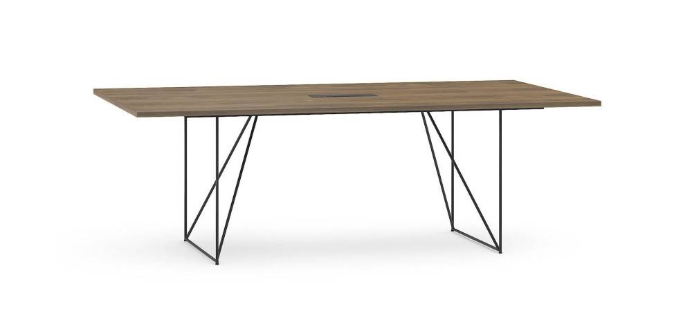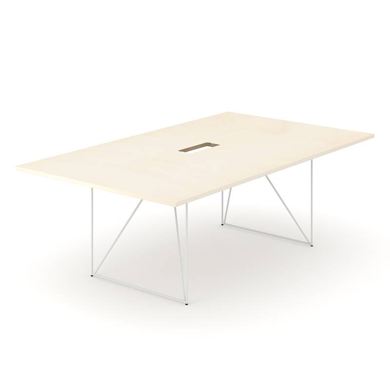 AIR neuvottelupöydän kansi on helppohoitoista ja huoletonta matalapainelaminaattia tai puuviilua. AIR jalat ovat maalattua metallia. Neuvottelupöytä sisältää metallisen johtoluukun keskellä pöytää sekä johtokorin luukun alla (sähköpistokkeet eivät sisälly hintaan, lisää ostoskoriin kohdasta "Lisätarvikkeet").