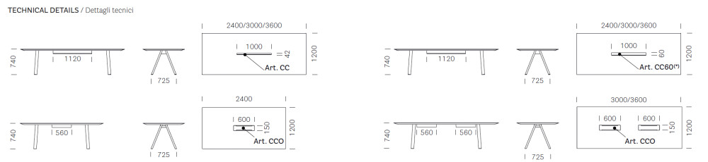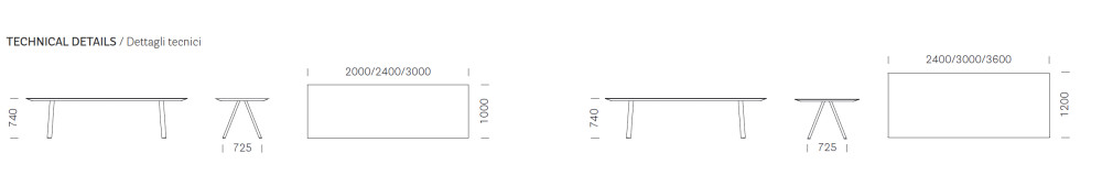 240x120 cm, 300x120 cm, 360x120 cm