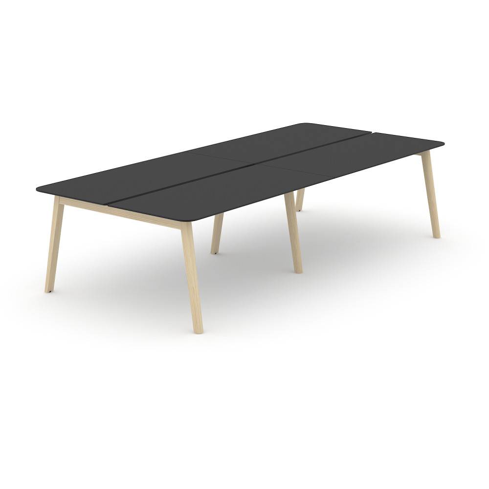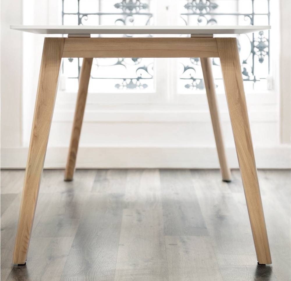 Pöydän jalat ovat massiivisaarnia, ja niissä on 10 mm säätötassut.