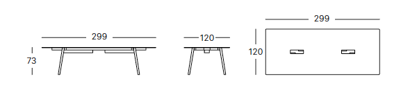 Pöydän koko: leveys 300 cm, syvyys 120 cm, korkeus 73 cm