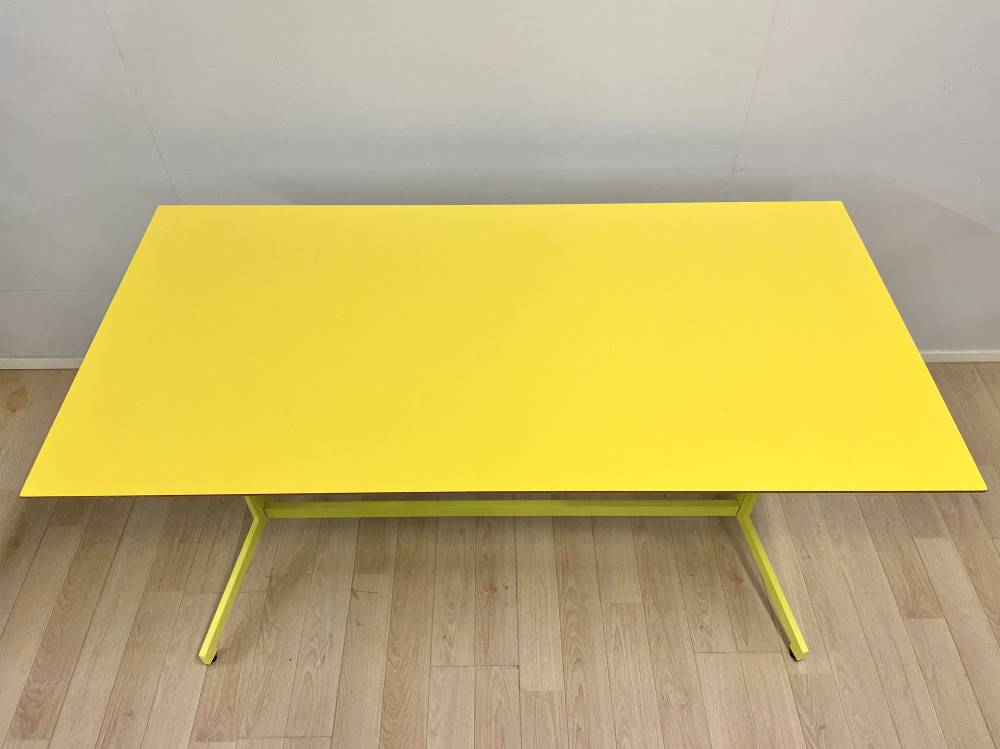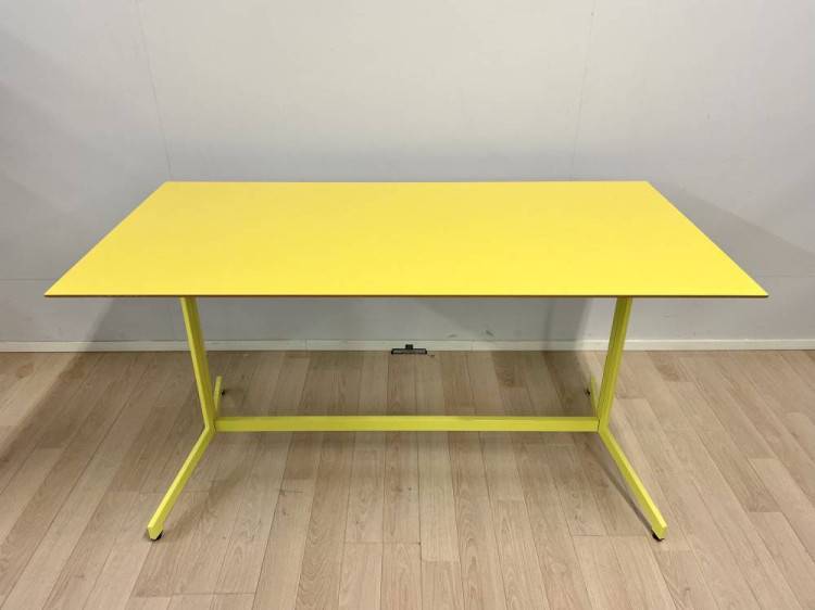 Siistikuntoinen neuvottelupöytä.Kansi kestävää laminaattia, alareuna viistetty.