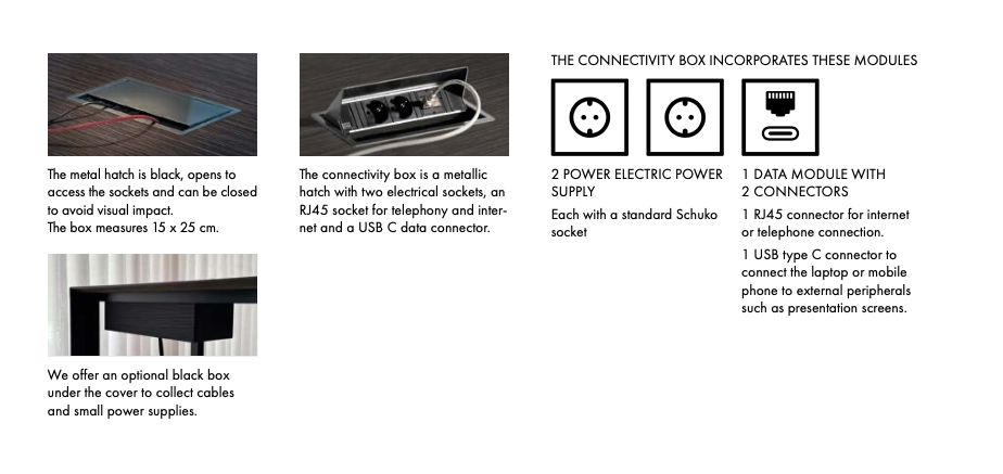 Pöytä on saatavana lisävarusteilla ja useita eri kokoja.