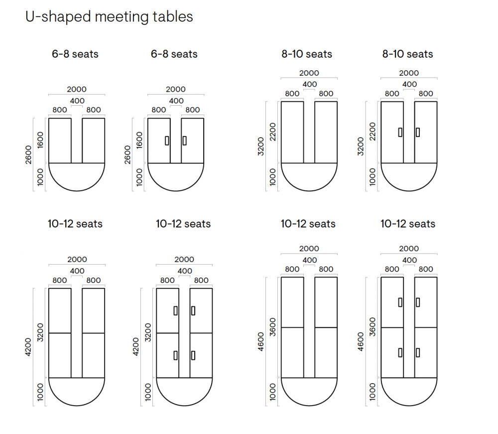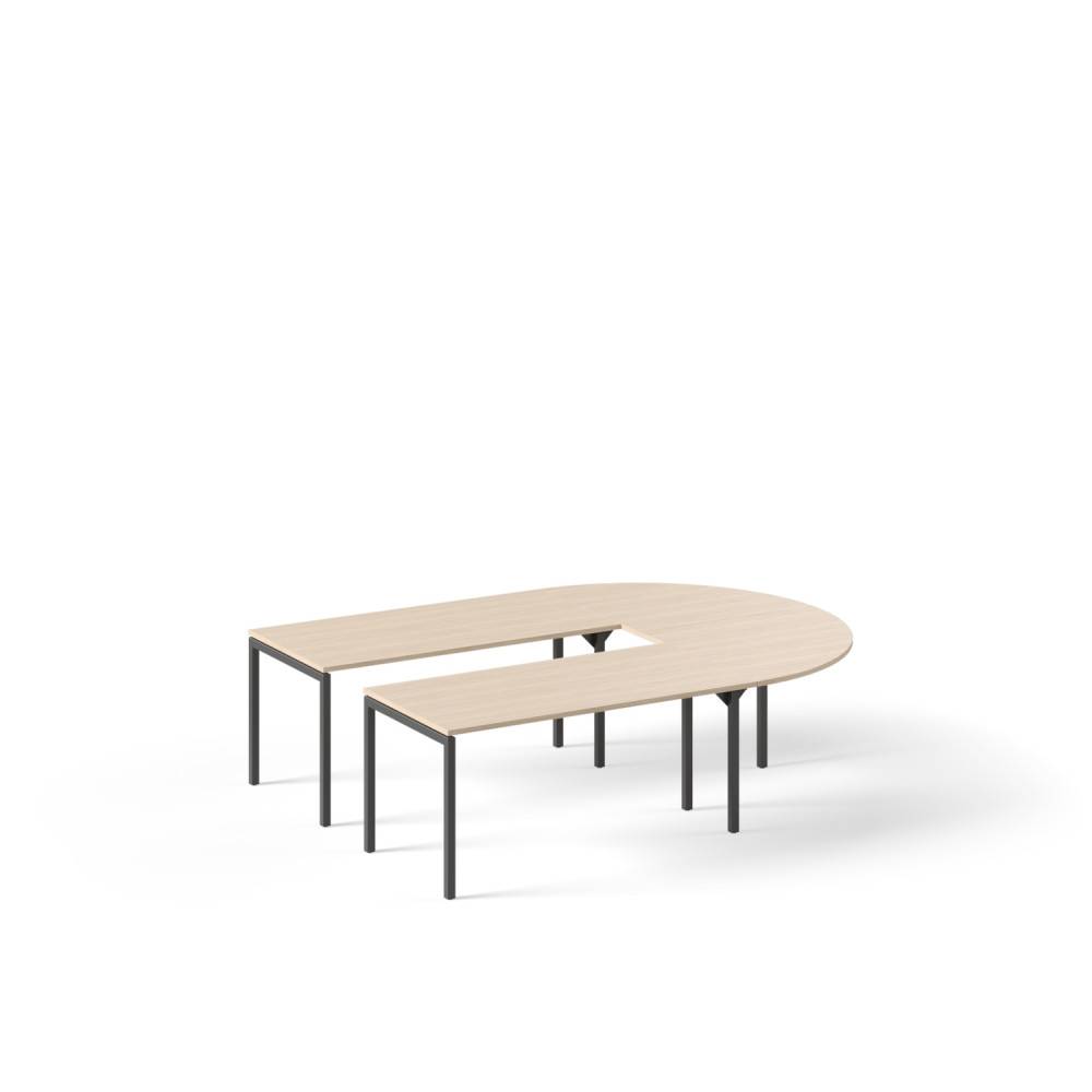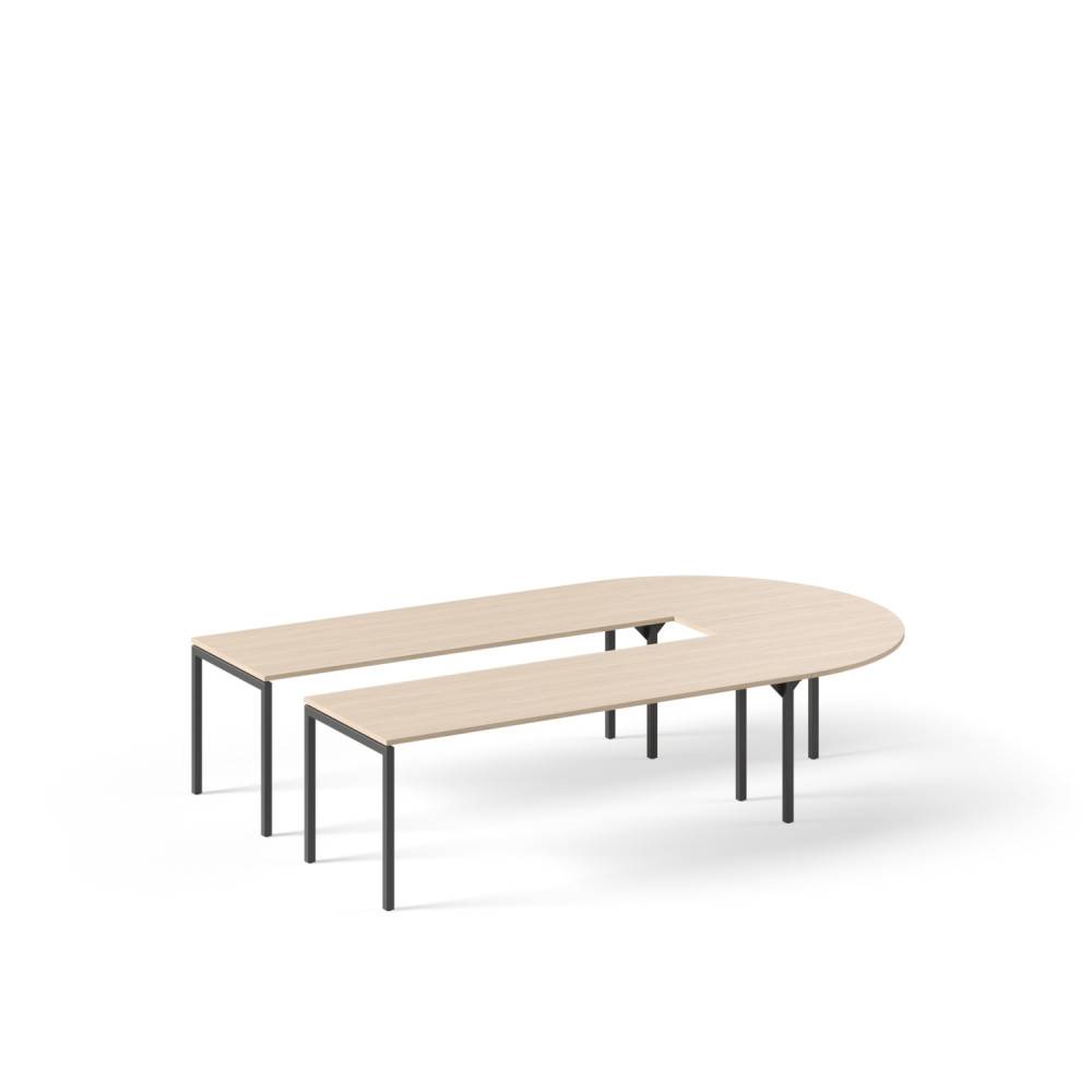 NARBUTAKSEN NOVA tuoteperheen uusi tulokas: U-mallinen neuvottelupöytä. Pöytäkokoja löytyy 6-8, 8-10 tai 10-12 hengelle. Pöytä koostuu useammasta pöytälevystä: suorista levyistä sekä yhdestä puolipyöreästä päätylevystä, U-kirjaimen mallisesti. Pöytien mitat näkyvät mittakuvissa.