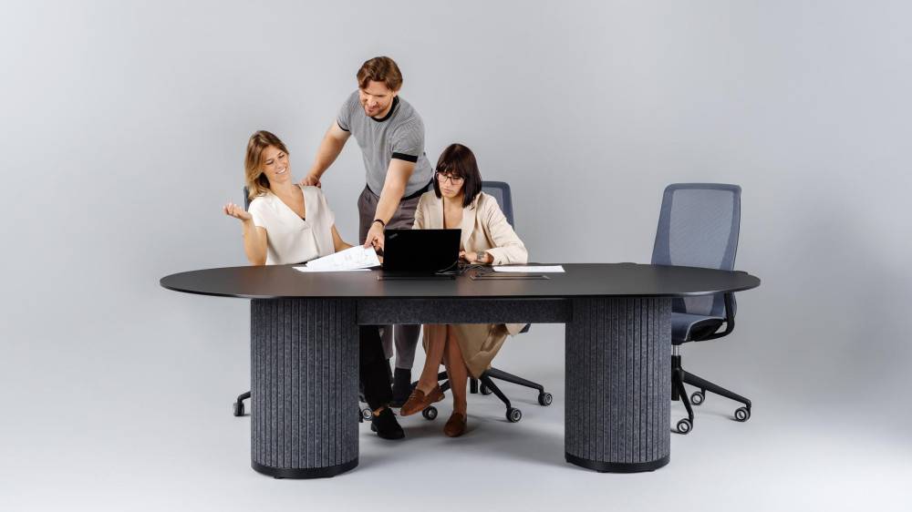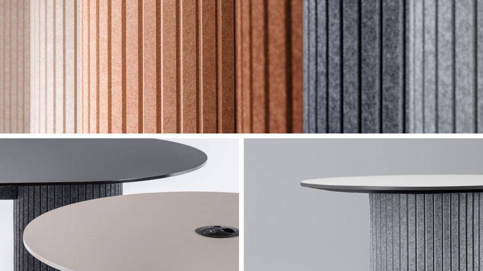 Narbutas Parthos-sarja on suunniteltu tuomaan sisustukseen eleganssia, toimivuutta ja akustisia etuja. Alun perin pöytäsarjaksi syntynyt konsepti laajeni luovasti akustisiin ratkaisuihin, jotka tarjoavat lisätoimintoja ja kestävyyttä. Sarjan keskeinen suunnitteluominaisuus on suuri sylinterimäinen muoto, joka on verhoiltu PET-huovalla. Tämä visuaalinen elementti yhdistää kaikki tuotteet ja luo yhtenäisen ilmeen. Parthos-sarjaan kuuluu pyöreitä ja soikeita neuvottelupöytiä, korkeita neuvottelupöytiä, sohvapöytiä sekä akustisia pylväitä ja muita akustisia tuotteita, kuten säilytys- ja ripustustiloja.