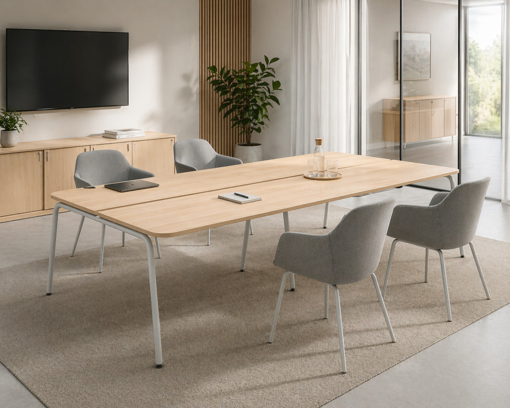 ROUND on neuvottelupöytä, joka on suunniteltu kokous- ja projektitiloihin sekä muihin yhteiskäyttöisiin työympäristöihin. Pöydän muotoilussa korostuvat pyöristetyt kulmat ja kevyt metallirakenne, jotka luovat selkeän ja ajattoman ilmeen. Se soveltuu erikokoisiin neuvottelutiloihin ja tukee toimivaa tilankäyttöä.