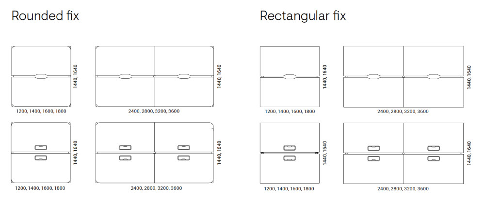 Suuremmat koot koostuvat useammasta pöytälevystä.