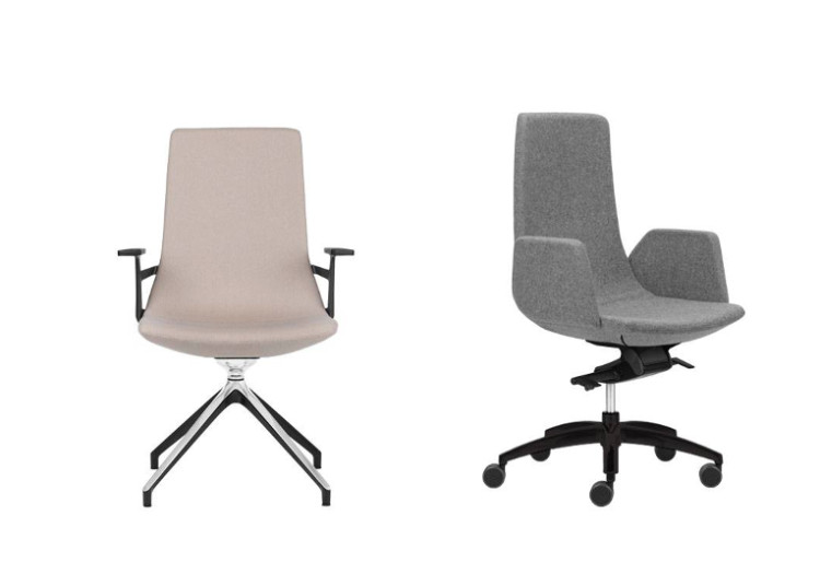 Pyörällisiin NORTH CAPE 2 tuoleissa on pyörivä 4-jalkainen pyramidirunko tai pyörällinen jalusta (mustan muovijalusta tai kiillotettu alumiini). Tuolia saa joko ilman käsinojia tai mustilla muovikäsinojilla, joissa on pehmeä PU päällinen tai kokonaan verhoilluilla käsinojilla.