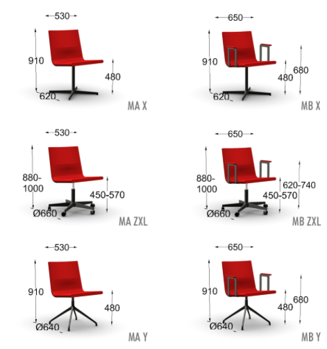 Voit valita vapaasti juuri tilaasi sopivan neuvottelutuolin haluamallasi jalkamallilla, verhoilulla ja istuimen korkeudella sekä ominaisuuksilla.