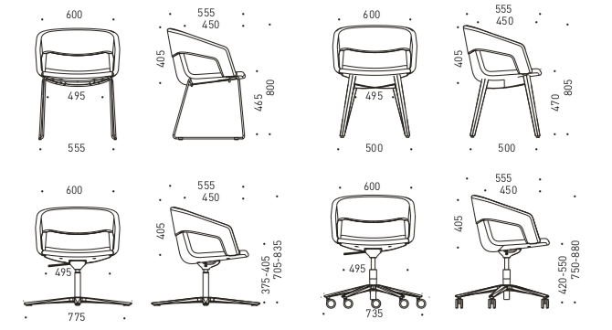 Neuvottelutuolin tyylikkään siluetin luovat pyöristetyt reunat ja kaarevat linjat selkänojan ja käsinojien välillä. Tuoli tarjoaa hyvän istuinmukavuuden, vaikka kokous kestäisikin pitempään.