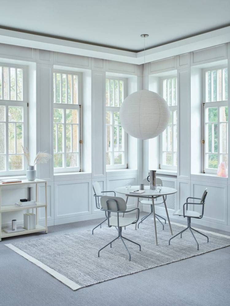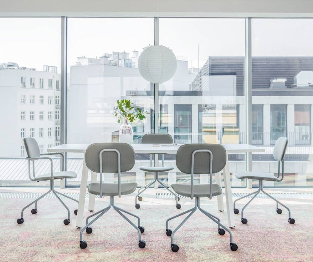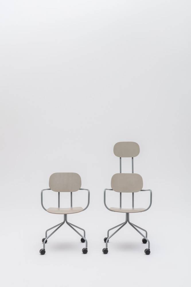 New School on saatavilla useilla eri jalustavaihtoehdoilla: nelipistejalka, pyörällinen malli, pyörivä ristikkojalusta sekä korkeussäädettävä versio. Tuolin voi valita joko vaneripintaisena tai verhoiltuna, ja lisävarusteina on käsinojat sekä niskatuki. Näin New School mukautuu erilaisiin käyttötarkoituksiin – työpisteille, neuvotteluhuoneisiin, kahviloihin tai koulutustiloihin. Kaikkiin malleihin, joissa on pyörät, voi valita kovat tai pehmeät pyörät lattiamateriaalin mukaan.