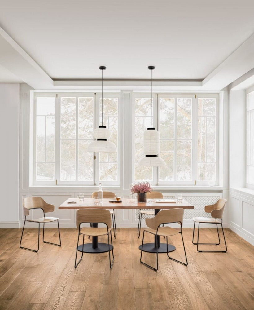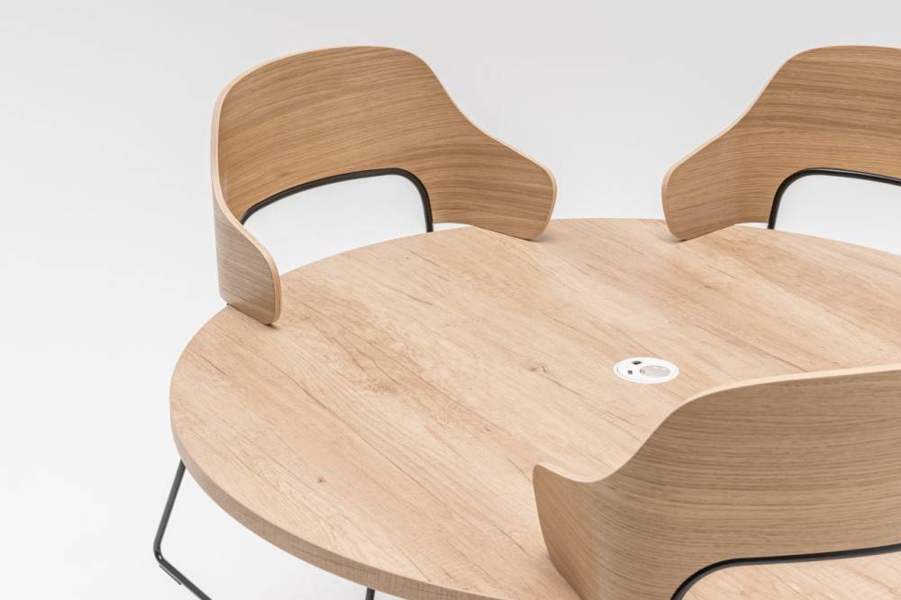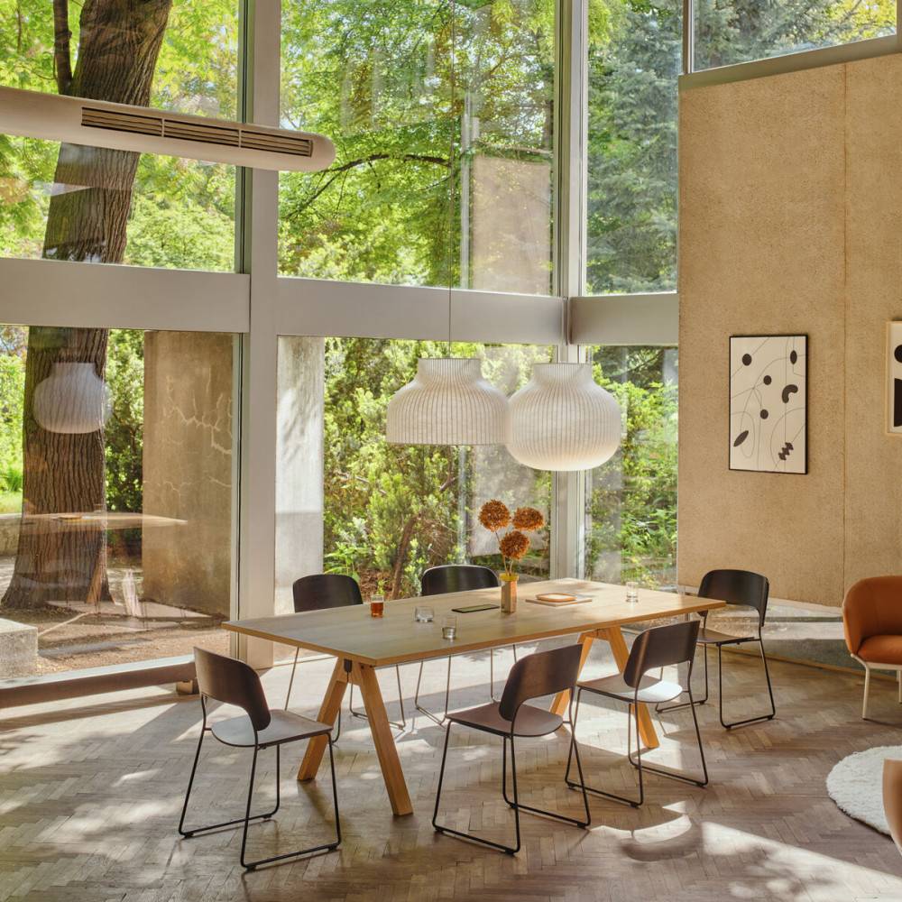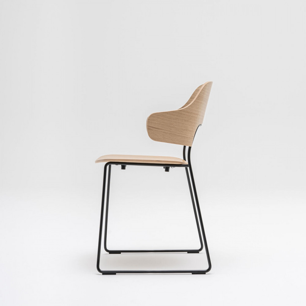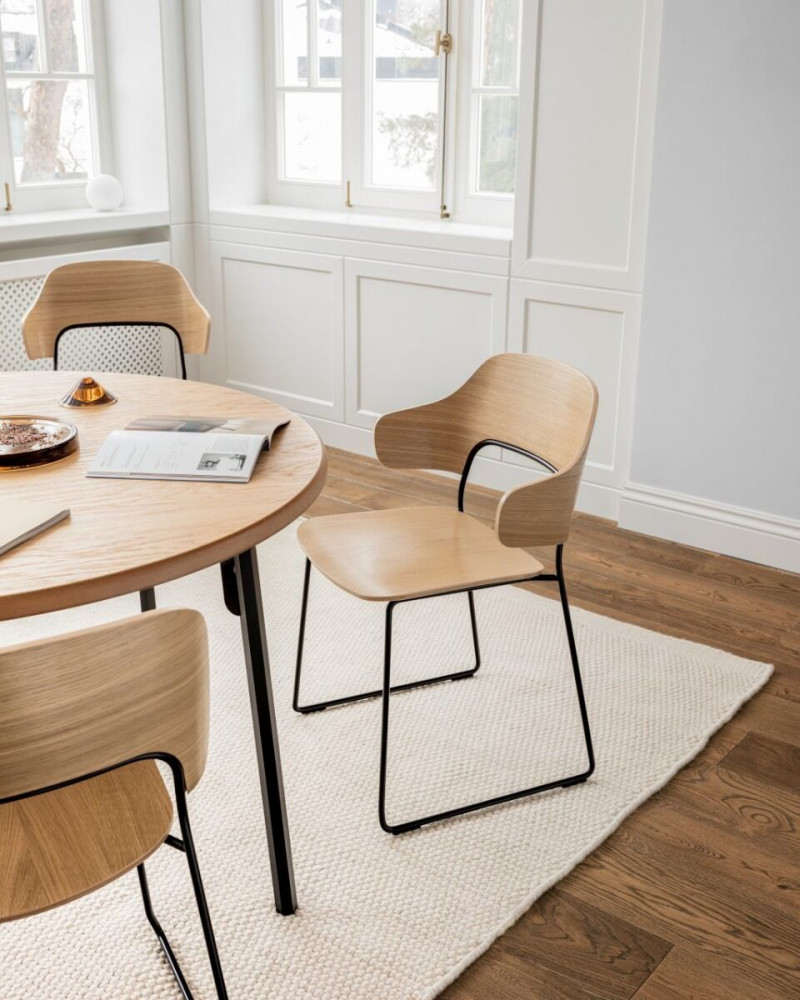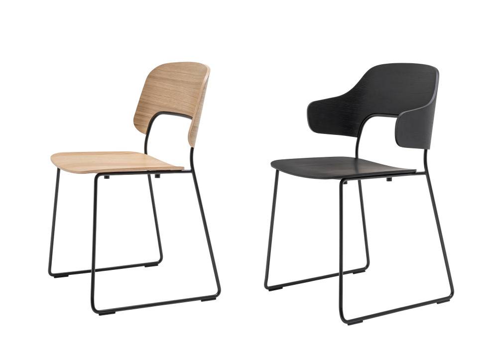 Tuolia voi pinota enintään 5 kappaletta päällekkäin, ja istuimen alle kiinnitetyt välikkeet suojaavat pintaa naarmuuntumiselta. Käsinojallinen malli voidaan ripustaa pöydän reunalle, mikä helpottaa siivousta ja tilan järjestelyä. Istuin on saatavissa joko tammiviiluisena tai verhoillulla pehmusteella, jolloin käyttömukavuus kasvaa entisestään.
