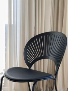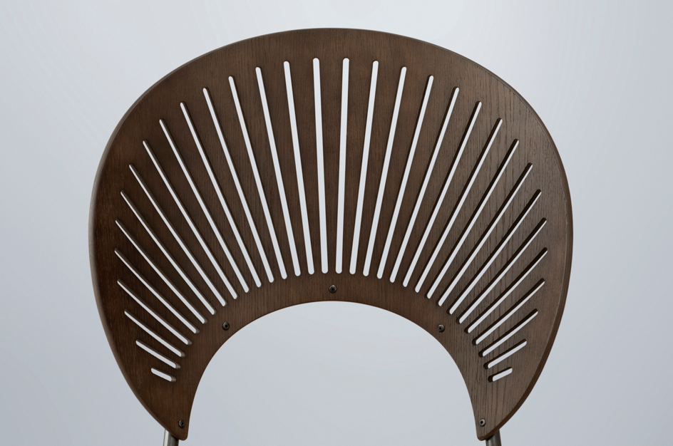 FREDERICIA TRINIDAD 3398 tuolin kaarevassa selkänojassa ja istuinosassa olevat leikkaukset toimivat paitsi koriste-elementteinä, mutta myös keventävät tuolin ulkoasua. Fretwork-työstö tekniikan ansiosta tuolilla on akustoiva vaikutus. Tuolista saatavilla myös vaihtoehto, jossa istuinosa on verhoiltu 3396.