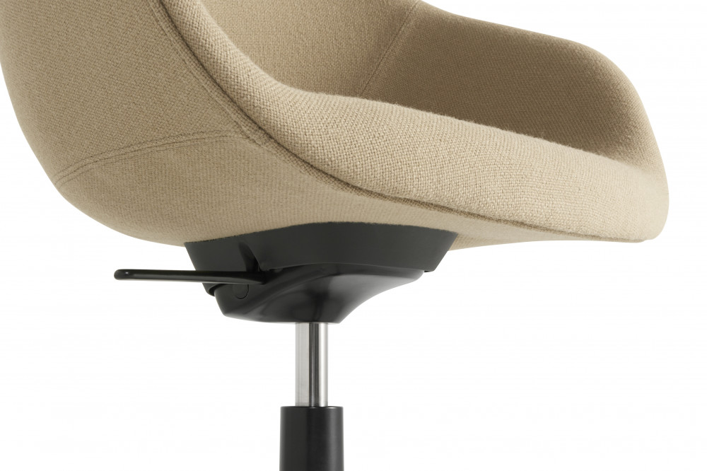HAY AAC 155 tuolissa on korkea selkänoja, mikä takaa hyvän istuinmukavuuden. Tuolista löytyy korkeussäätö ja keinumekanismi. Saatavilla useita eri verhoiluvaihtoehtoja, minkä vuoksi tuoli soveltuu helposti monenlaisiin työympäristöihin ja julkitiloihin.