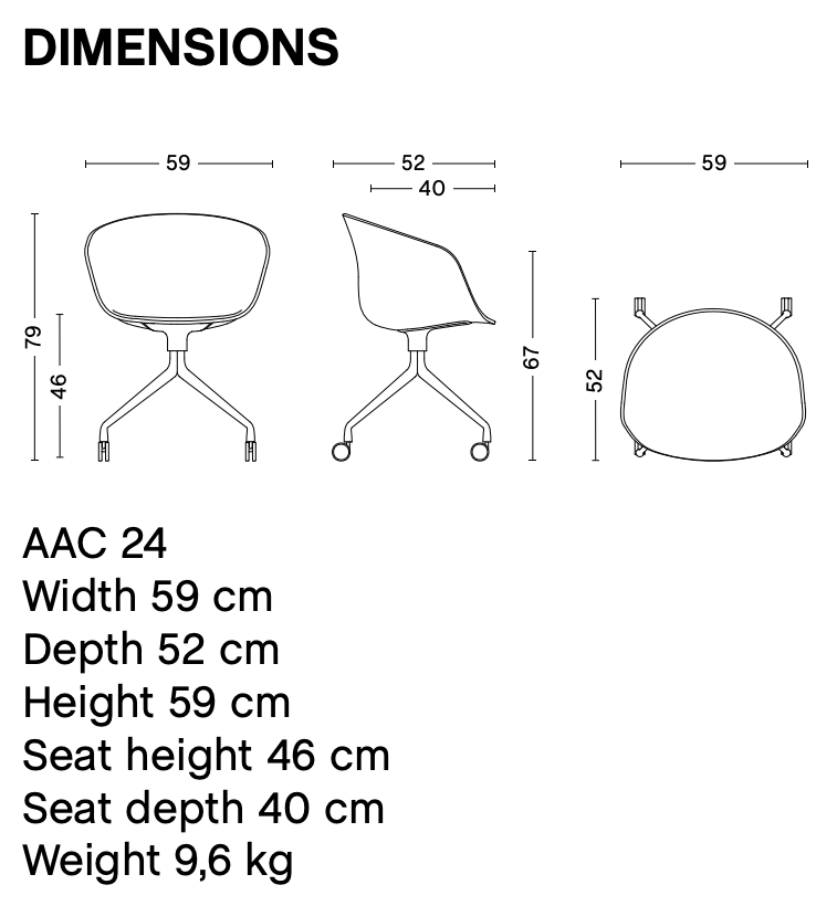 HAY AAC 20 ja AAC 24 ovat osa laajaa About A Chair -sarjaa, johon kuuluu neuvottelu-, työ- ja aulatuoleja sekä pöytiä ja sohvia. Sarjan yhtenäinen muotokieli mahdollistaa kalusteratkaisujen suunnittelun toimistoihin ja julkisiin tiloihin.