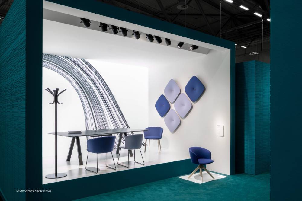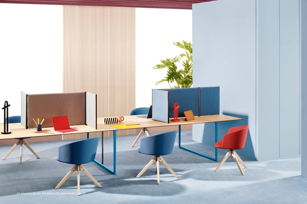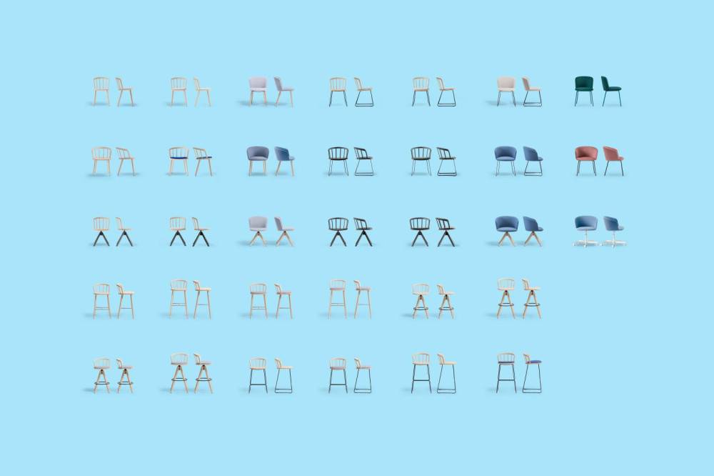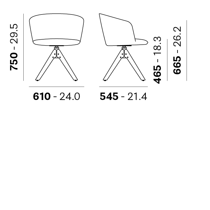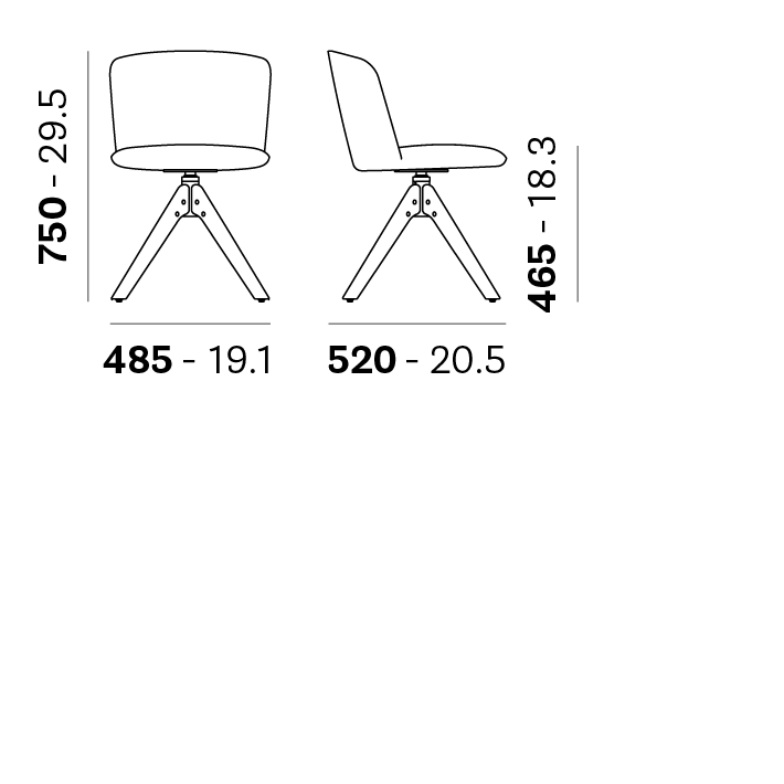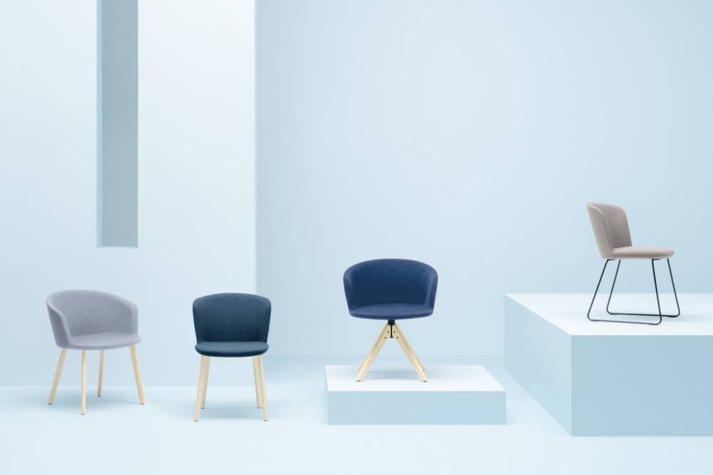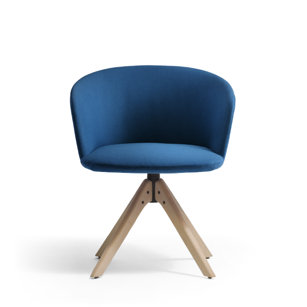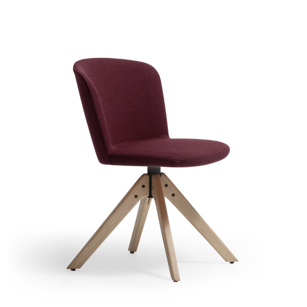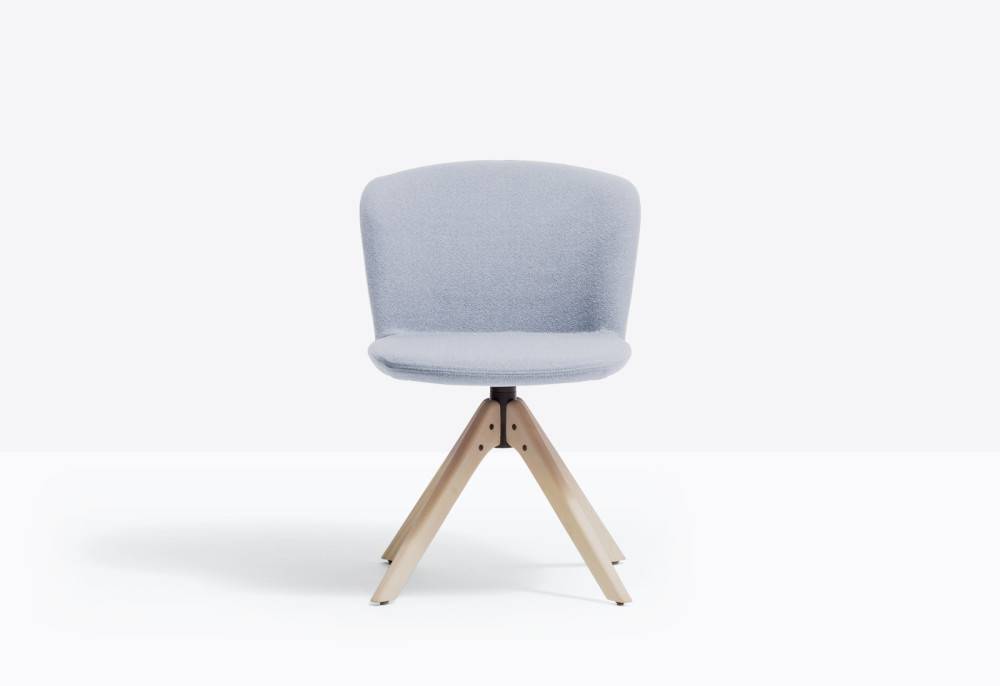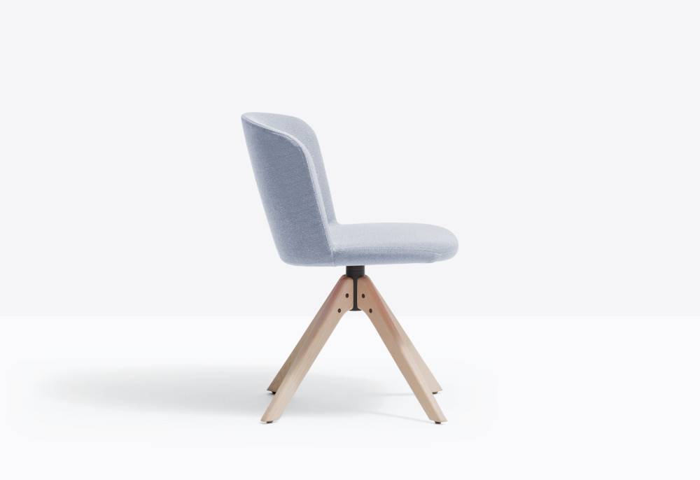PEDRALI Nym Soft 2847 tuolissa on kääntyvä ympäriverhoiltu istuinosa palautusmekanismilla. Puinen jalkaosa.