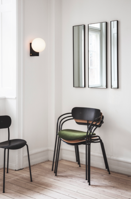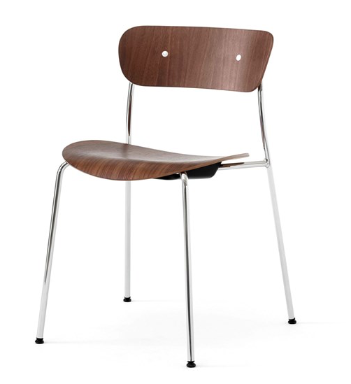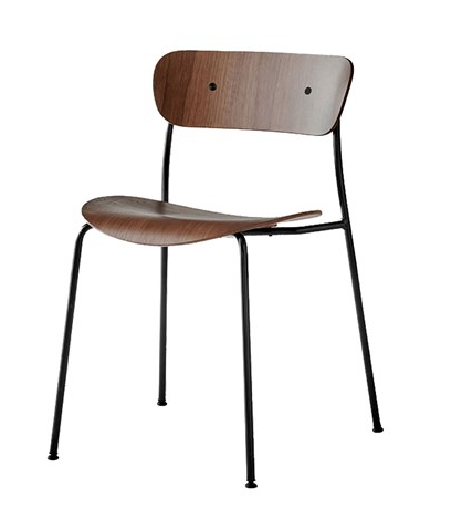 &Tradition Pavillion AV1 tuolissa siro teräsputkirunko yhdistyy kauniiseen puuviiluiseen istuinosaan. Tuoli on käsinojaton, verhoilematon ja pinottava.