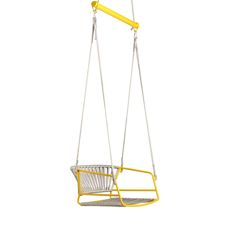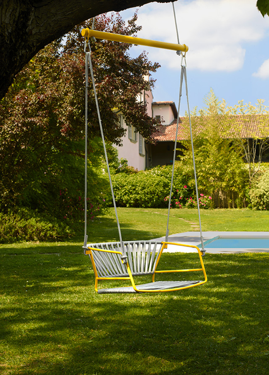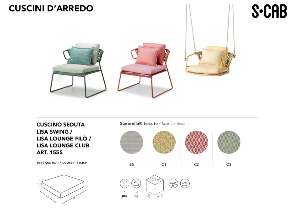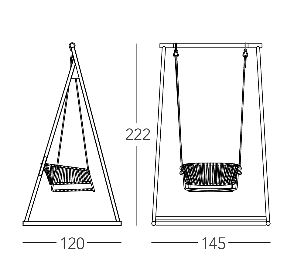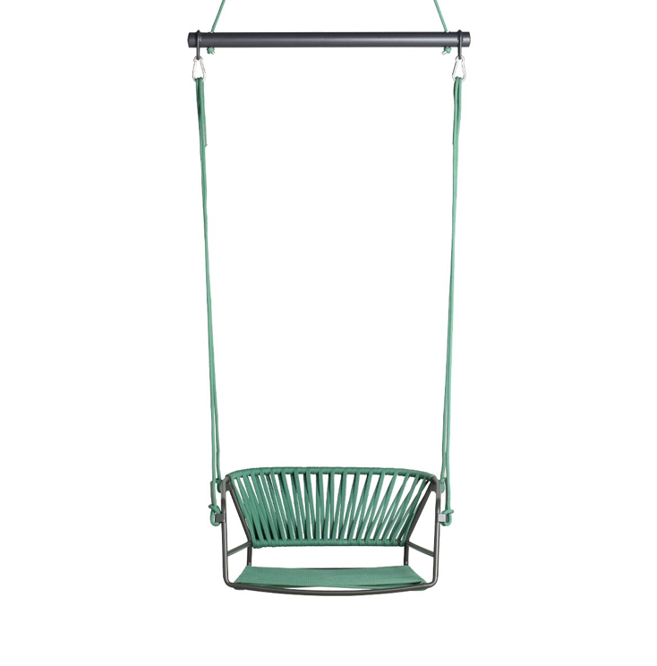 SCAB Lisa Swing istuinosa ja selkänoja on valmistettu kierrätetystä punoksesta, mikä on valmistettu 100% kierrätetystä polyesteristä. Se on värjätty, myrkytön, kestävä ja helppo ylläpitää. Runko maalattua putkiterästä. Kiinnitys yhdellä koukulla tai kaksi koukkua ja välipuu. Soveltuu sisä- ja ulkokäyttöön.
