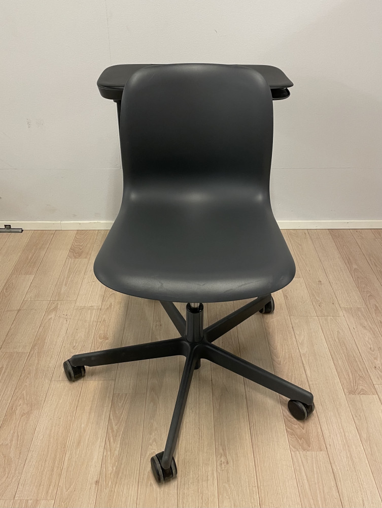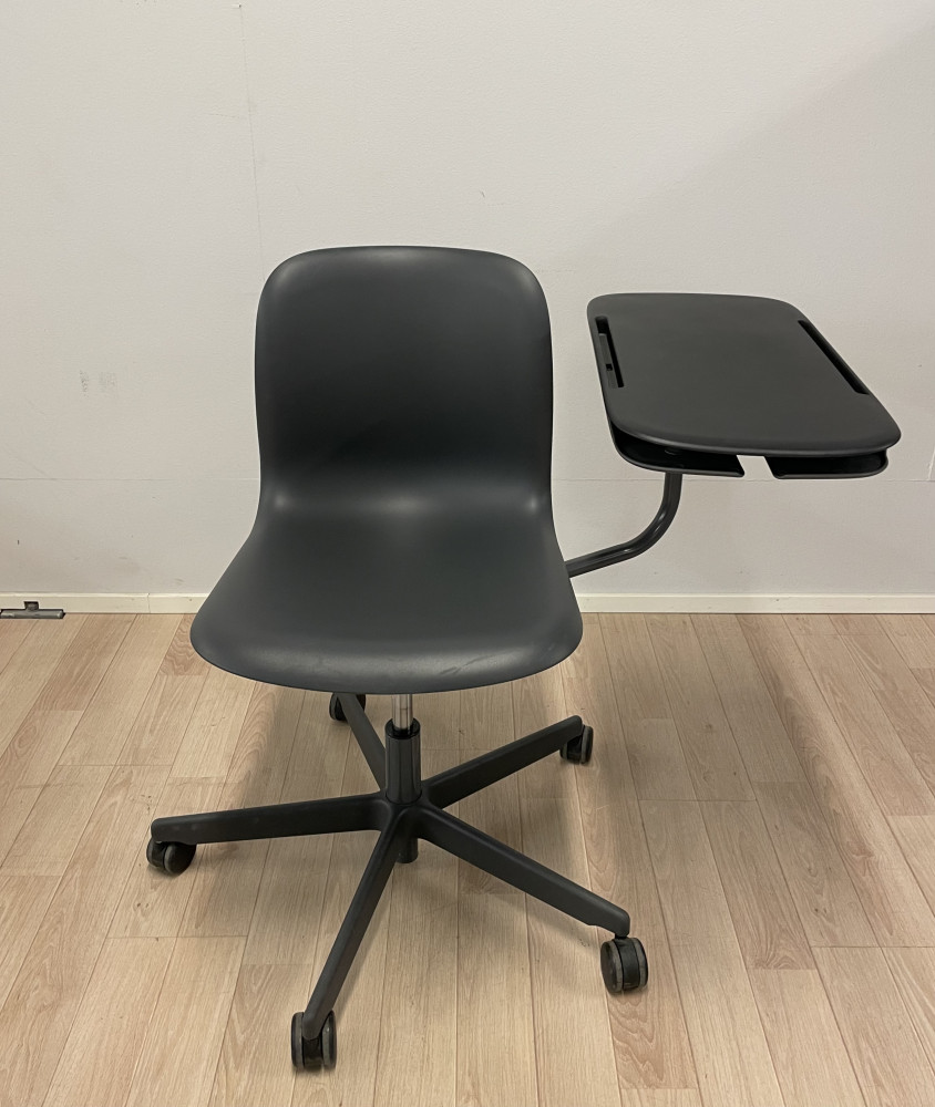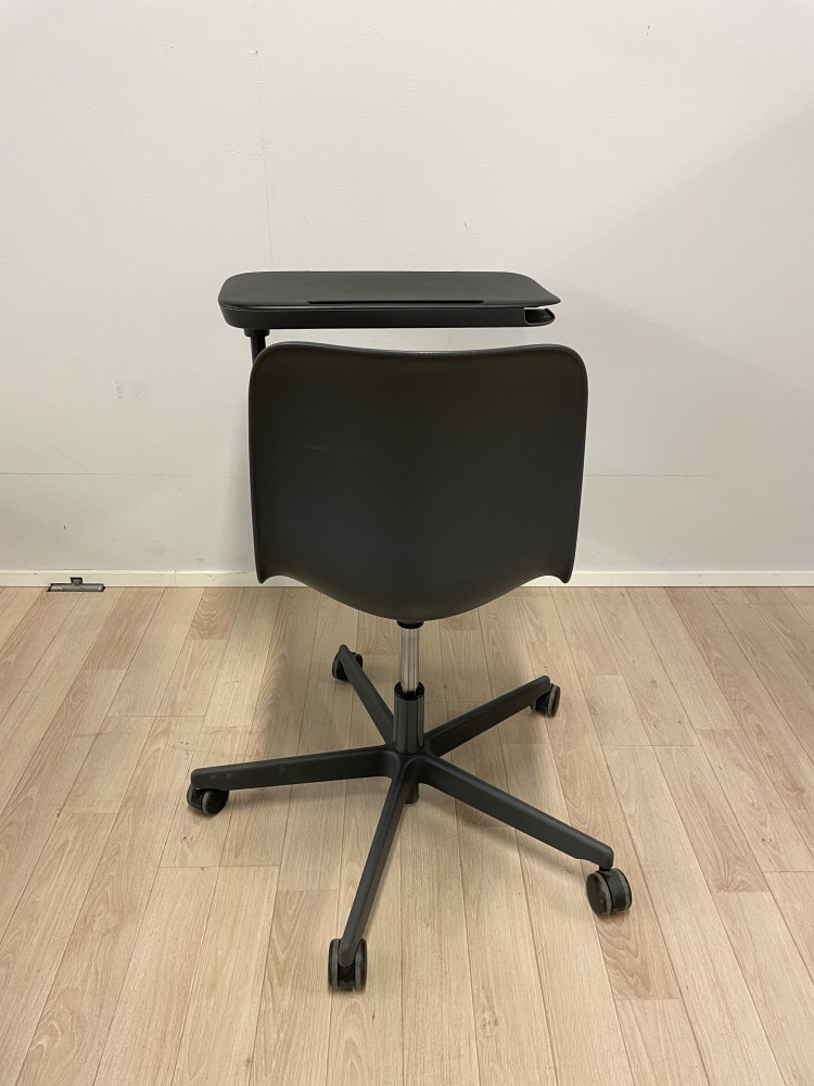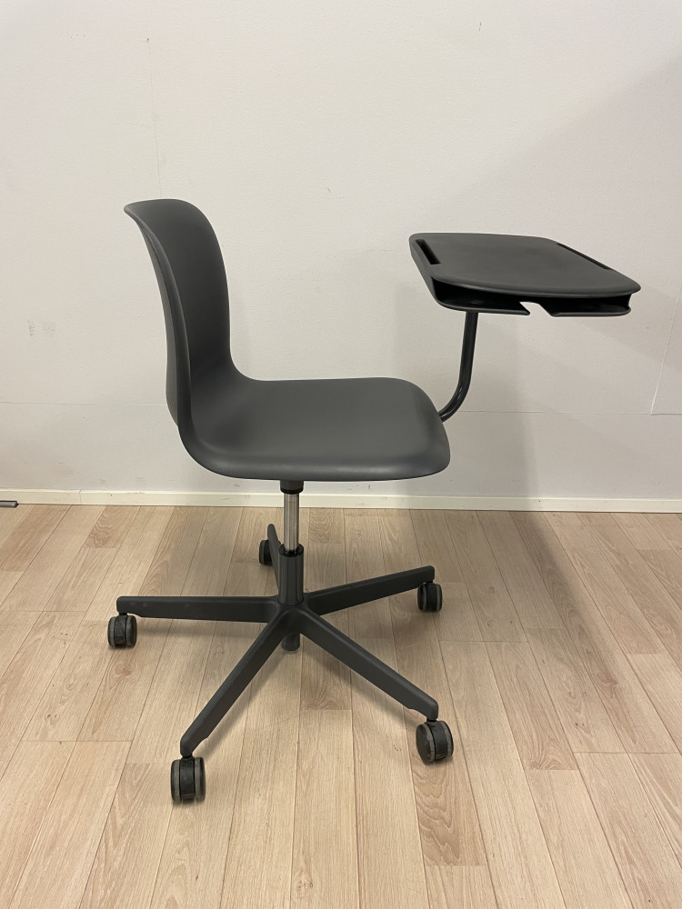 Korkeudensäätö kaasujousella, pöytä kääntyy kevyesti tarpeen mukaan tuolin ympäri.