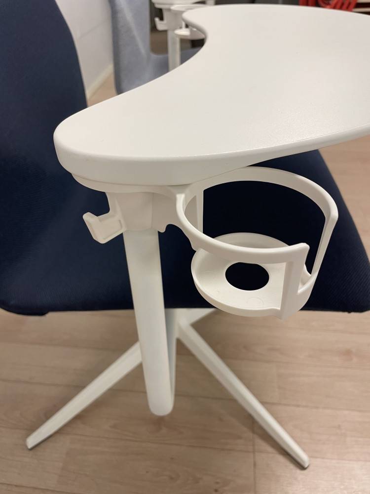 Pöydän alla kääntyvä mukiteline ja ripustuskoukku.