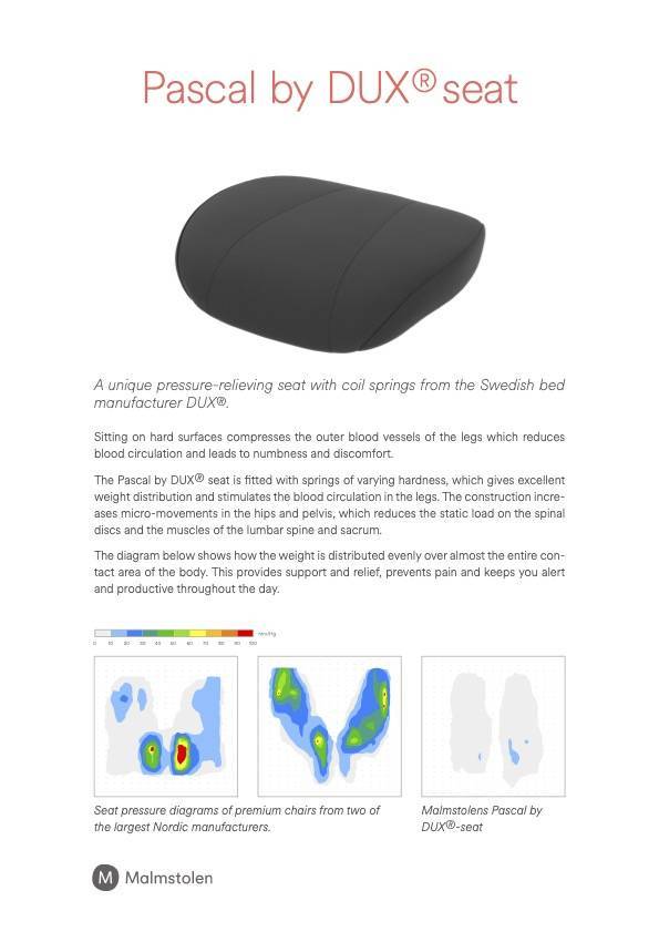 - Saatavissa Dux-jousitettu istuin (Pascal by DUX®) tavallisen vaahtomuovi-istuimen tilalle
