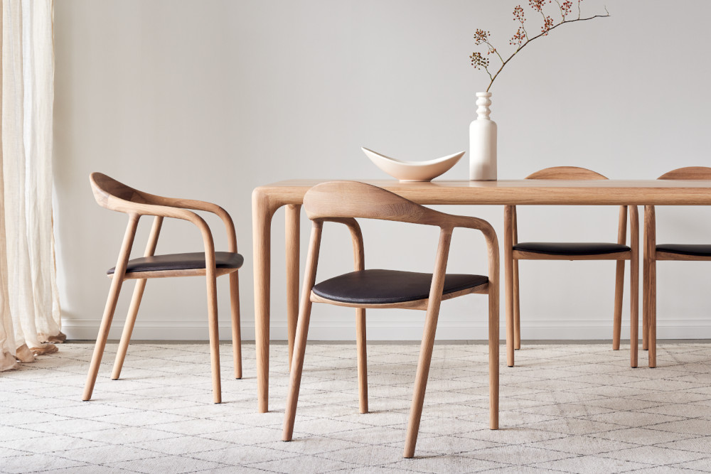 Artisan Neva-tuoli on kuin veistos tilassa, pehmeälinjainen ja samalla tunnistettava. Sen rakenteessa toistuvat harkitut yksityiskohdat, joissa kaarevat linjat jatkuvat saumattomasti selkänojasta käsinojiin ja jaloiksi. Massiivipuun luonnollinen tekstuuri ja hienovaraiset muodot tekevät tuolista sekä mukavan että esteettisesti ajattoman.