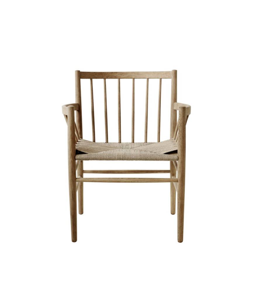 J81-tuolin rungossa yhdistyvät laadukas massiivitammi tai -pyökki ja käsin punottu paperinaruistuin. Sen leveä istuin ja ergonomisesti muotoillut käsinojat tekevät siitä erinomaisen valinnan niin ruokapöydän ääreen kuin itsenäiseksi nojatuoliksi esimerkiksi työ- tai oleskelutilaan.