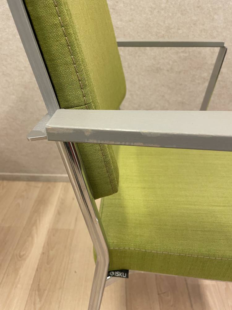 Tuoleissa on siistit verhoiluosat, käsinojissa käytönjälkiä.
