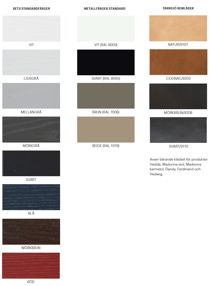 Sarja on Möbelfakta-hyväksytty ja täyttää korkeat vaatimukset laadun, ympäristön ja sosiaalisen vastuun osalta.