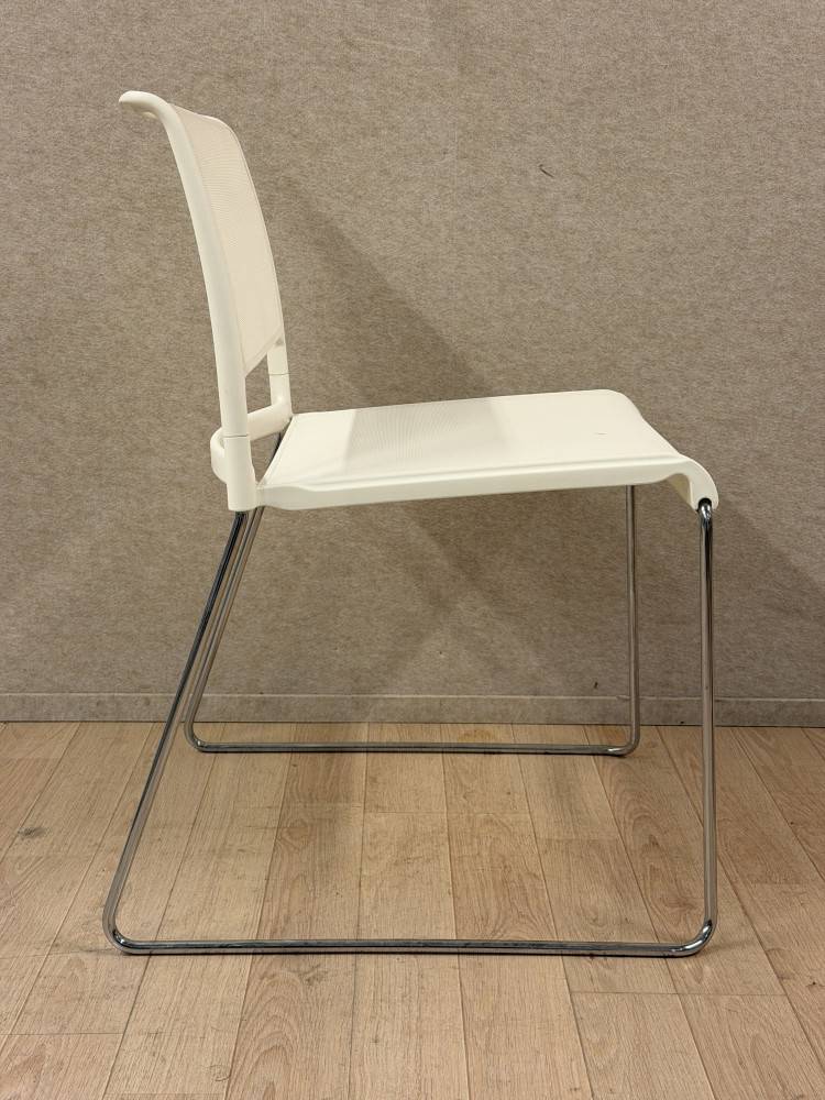 Wilkhahn Aline on saksalainen design-neuvottelutuoli moderneihin toimisto- ja asiantuntijaympäristöihin. Tämä käytetty Wilkhahn Aline -tuoli on verkkorakenteinen kokonaisuudessaan, eli sekä istuin että selkäosa ovat verkkomateriaalia. Tuoli on varustettu lenkkijalustalla.
