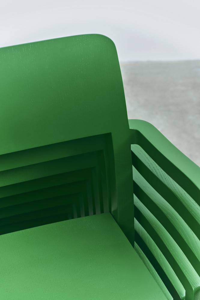 Istuin ja selkänoja on valmistettu muotoon puristetusta vanerista, jossa on pintaviilu (tammi, saarni tai pähkinä). Runko on massiivipuuta. Tuolit ovat pinottavissa jopa 6 kappaleen pinoihin.