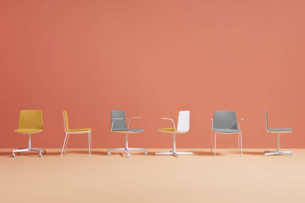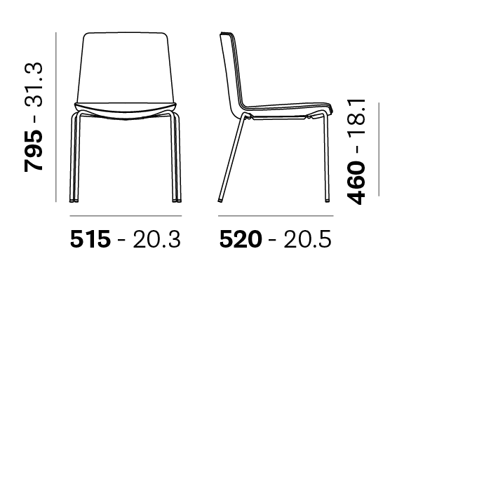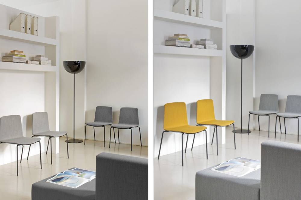 Tuolit ovat pinottavia, mikä helpottaa varastointia ja tilan muunneltavuutta. Malli 725 on ilman käsinojia ja 726 käsinojilla.
