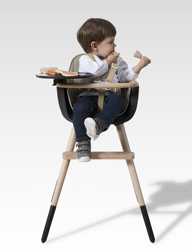 OVO syöttötuoli yksi Micunan ikonisimmista malleista. Syöttötuolista istuin muovia, runko pyökkiä ja jalat metallia. Syöttötuolissa kääntyvä tarjotin.
