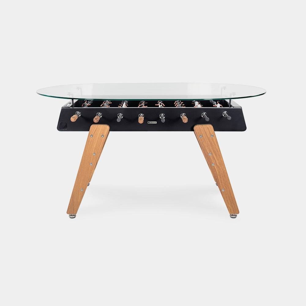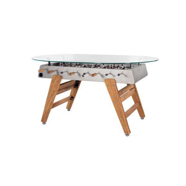 RS3 Wood Dining yhdistää jalkapallopelin ja ruokailun ainutlaatuisella tavalla. Tämä pöytä, jossa on näyttävät puujalat ja lasikansi, on suunniteltu tuomaan iloa niin kotiin, ravintolaan kuin työpaikan yhteisiin tiloihin. Pöytä kutsuu viettämään unohtumattomia hetkiä, joissa pelin jännitys ja herkulliset välipalat kulkevat käsi kädessä.