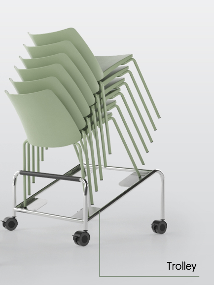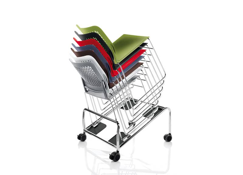 Monikäyttöinen tuolivaunu useille eri tuolimallille. Tukeva ja käytännöllinen ratkaisu tuolien siirtämiseen ja varastointiin. Kromattu teräsrunko antaa kestävyyttä ja ammattimaisen ilmeen, ja jarrulliset kumipyörät takaavat hiljaisen ja vakaasti rullaavan liikkeen myös herkimmillä lattioilla.