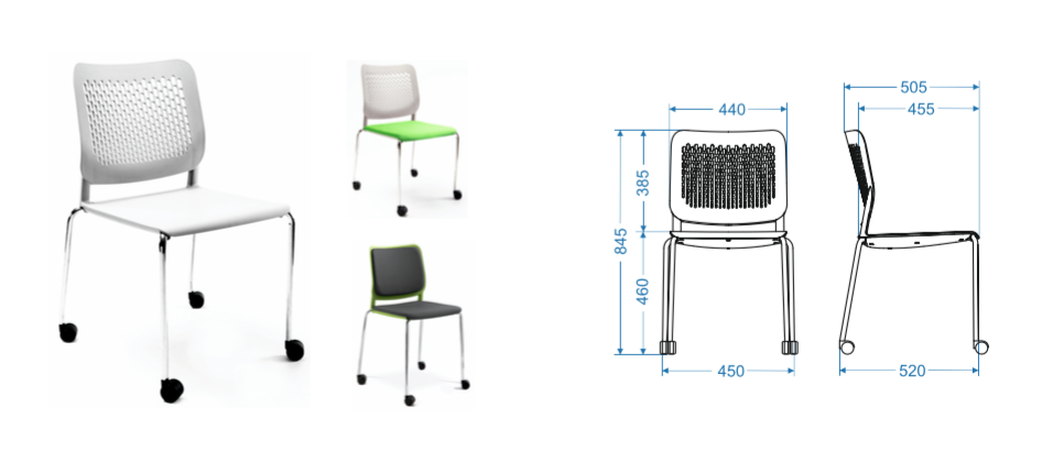 Nelipistejalustaista WAIT tuolia on saatavana käsinojilla sekä pyörillä. Lisäksi käsinojalliseen malliin voi liittää sivulle taittuvan kirjoitustason.