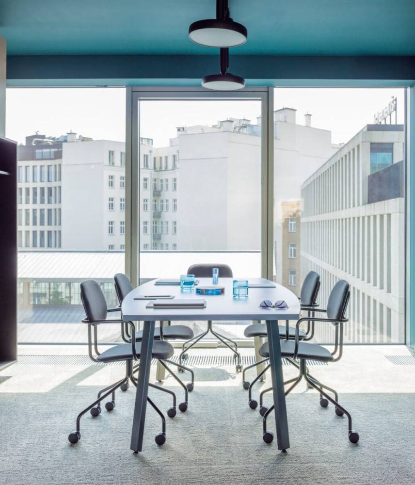 New School on saatavilla useilla eri jalustavaihtoehdoilla: nelipistejalka, pyörällinen malli, pyörivä ristikkojalusta sekä korkeussäädettävä versio. Tuolin voi valita joko vaneripintaisena tai verhoiltuna, ja lisävarusteina on käsinojat sekä niskatuki. Näin New School mukautuu erilaisiin käyttötarkoituksiin – työpisteille, neuvotteluhuoneisiin, kahviloihin tai koulutustiloihin. Kaikkiin malleihin, joissa on pyörät, voi valita kovat tai pehmeät pyörät lattiamateriaalin mukaan.