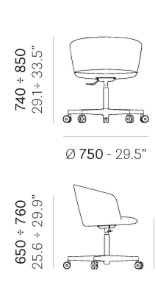 Pedrali Nym Soft 2877 tuolissa on pyörivä ympäriverhoiltu istuinosa. Korkeussäädettävä teräsrunko ja valettu alumiininen 5 sakarainen ristikkojalka pyörillä.