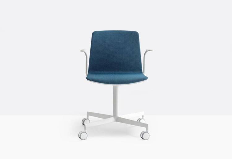 PEDRALI Noa 728 tuolissa on kääntyvä polykarbonaatti istuinosa etuverhoilulla. Valettu alumiininen 4 sakarainen ristikkojalka pyörillä.