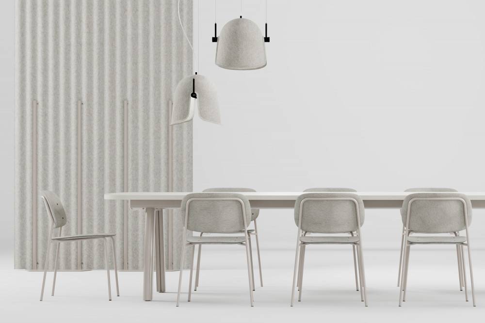 Hale-tuolin istuin ja selkänoja on valmistettu PET-huovasta. PET-huopa on valmistettu kierrätetyistä muovipulloista. PET-huopa on pehmeä, mutta kestävä materiaali, jolla on erinomainen akustinen suorituskyky. Se on sekä kierrätettyä että kierrätettävää.