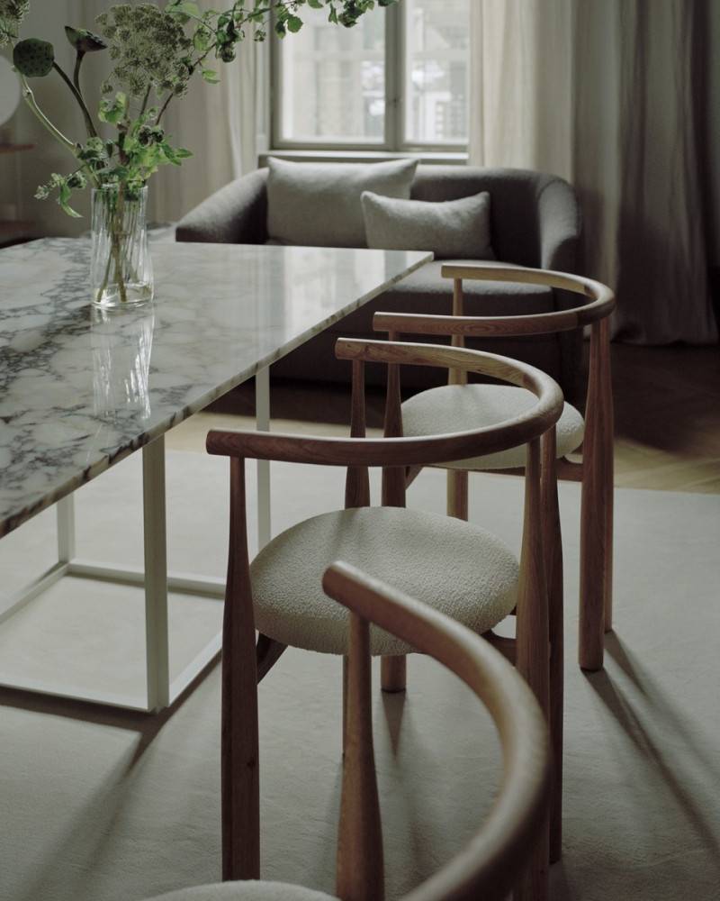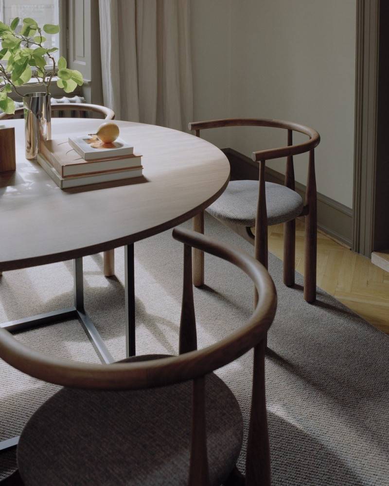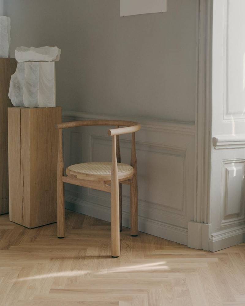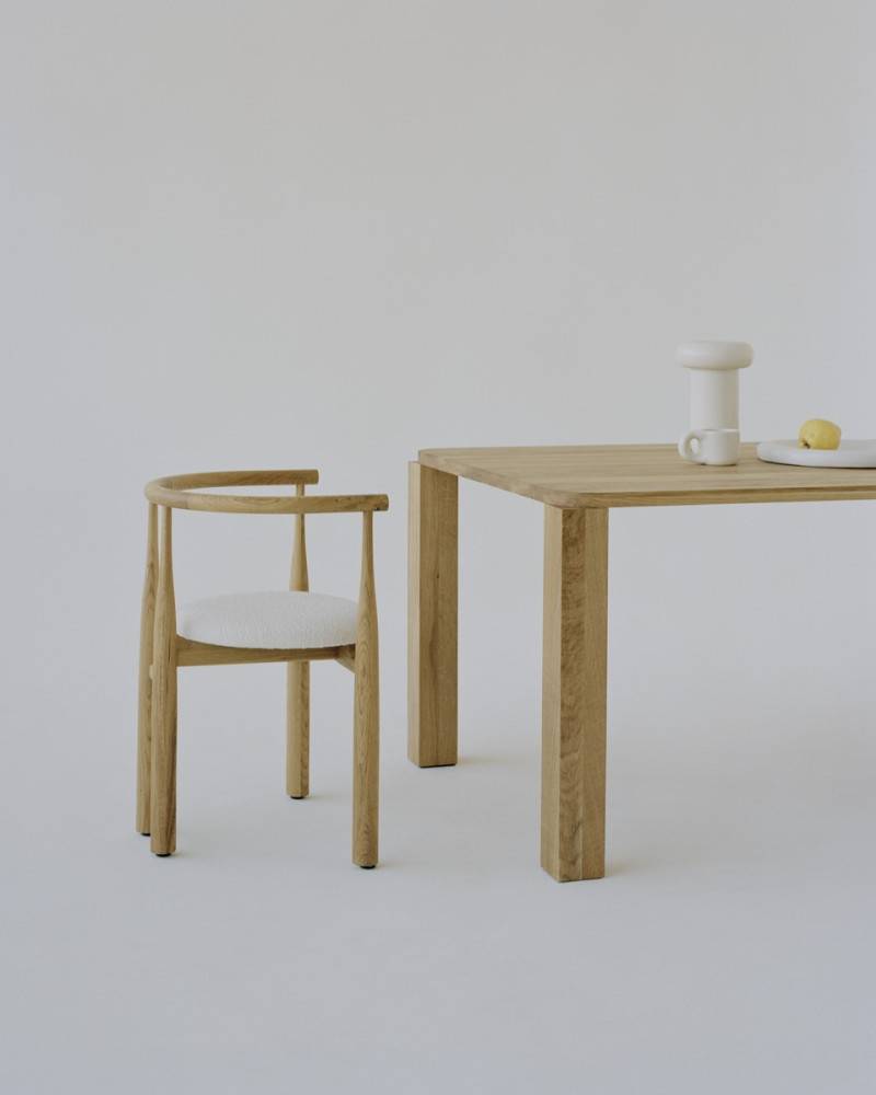 Bukowski-tuoli on kunnianosoitus klassiselle modernismille, mutta täysin uudella tavalla tulkittuna. Sen rohkeat mittasuhteet luovat muodon, joka on yhtä aikaa elegantti ja yllättävä. Sulava siirtymä ohuista linjoista massiivisiin jalkoihin tekee tuolista veistoksellisen kokonaisuuden, jossa puu tuntuu liikkuvan kuin tanssissa.