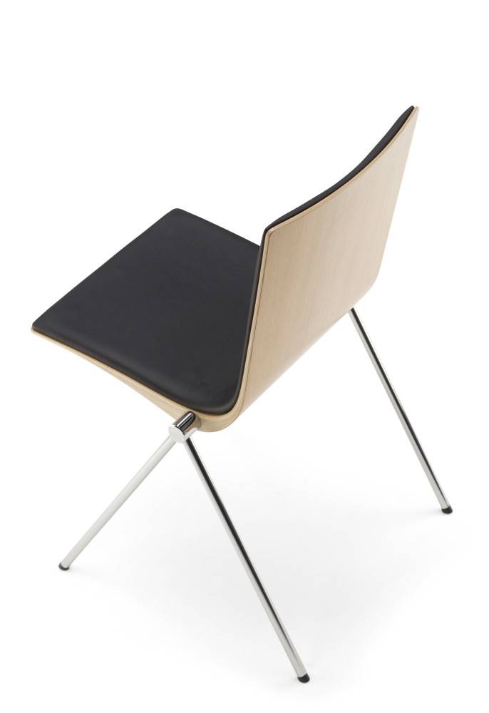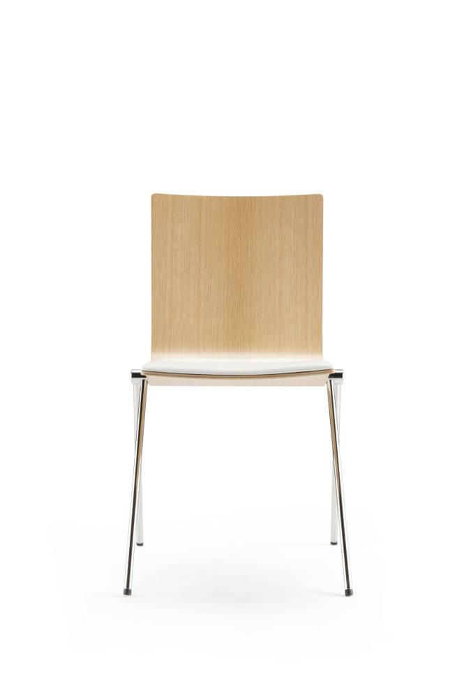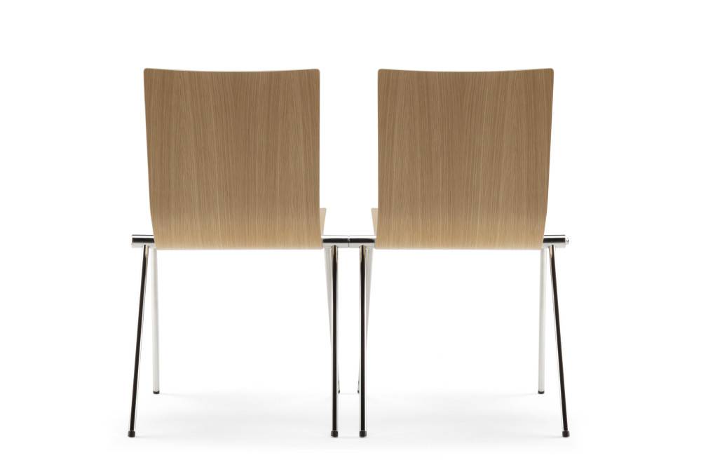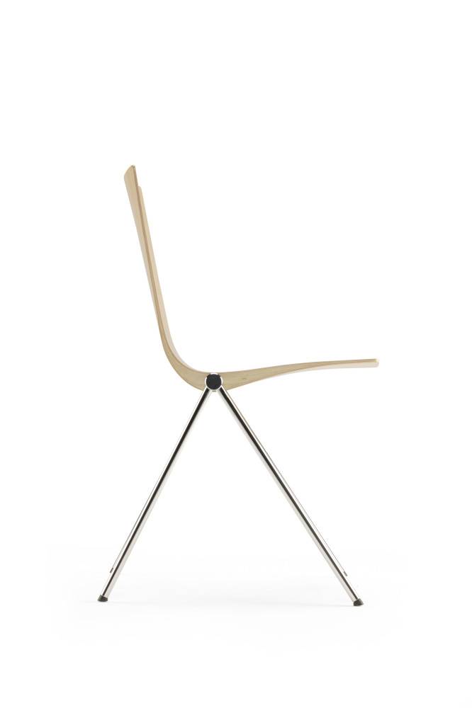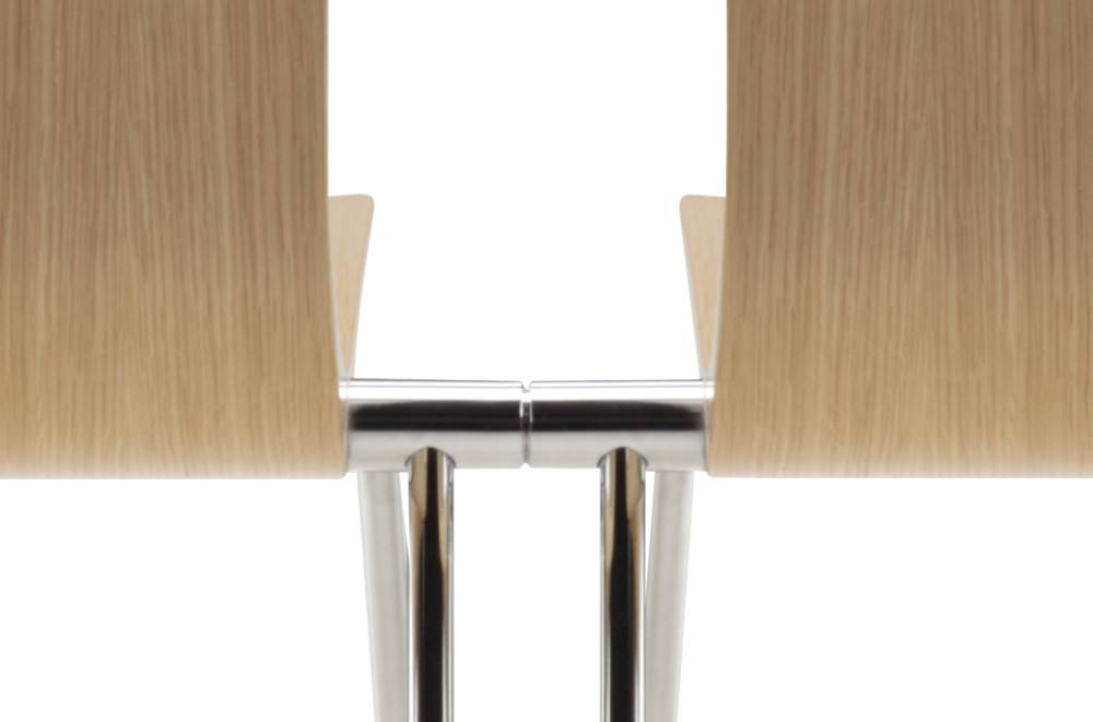 Tuolissa on metalliset jalat ja puristamalla koivuviilusta valmistettu istuinosa. Rakenteessa ei ole näkyviä kiinnitysratkaisuja istuinosan ja jalkojen välillä, mikä tukee selkeää ja viimeisteltyä muotokieltä.
