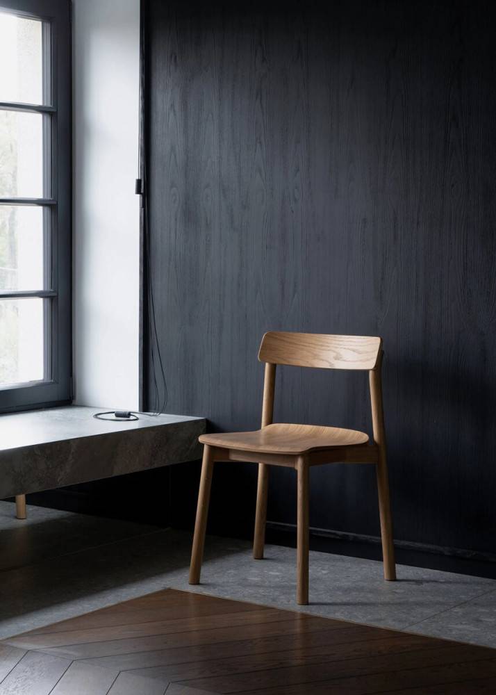 Tuolin runko on valmistettu massiivitammesta. Istuinosassa ja selkänojassa käytetään muotoon puristettua viilutettua kovapuuvaneria, joka mahdollistaa ergonomisesti kaarevan istuinpinnan ja kevyen rakenteen. Pinta on viimeistelty akryylilakalla, joka suojaa puupintaa ja korostaa materiaalin luonnollista ilmettä.