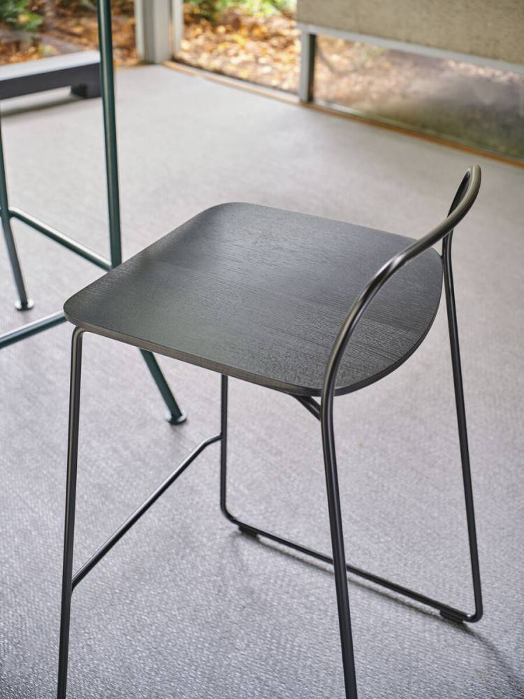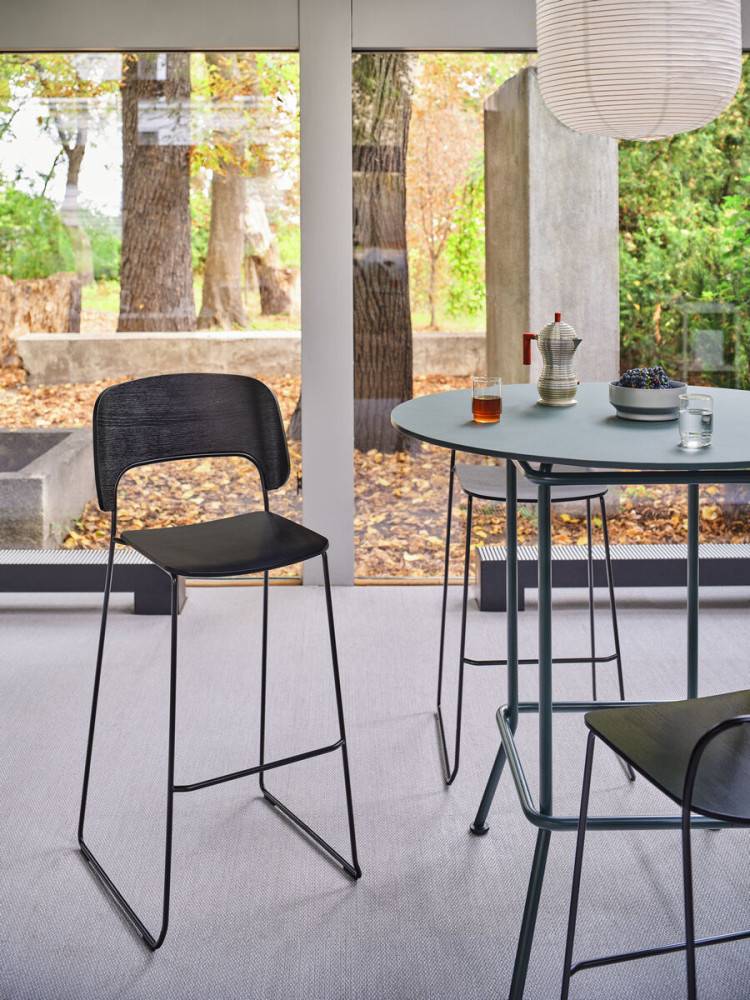 Tuoli on saatavana kahdessa korkeudessa, jolloin se mukautuu sekä keittiö- että baaritasoihin. Selkänojallinen versio tuo lisätukea istumiseen, kun taas selkänojaton malli on kevyt ja helposti siirreltävä. Jalkatuki rungon etupuolella lisää käyttömukavuutta pidemmässäkin istumisessa.