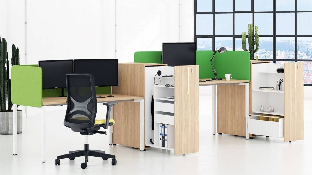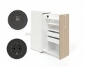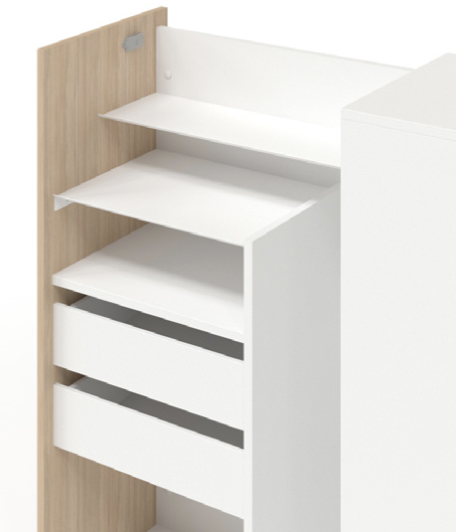 NARBUTAKSEN BOXI apteekkarinkaappi sijoitetaan pöydän päätyyn, jolloin se toimii myös tilanjakajana. Kaappia on saatavana joko oikean- tai vasemmankätisenä.