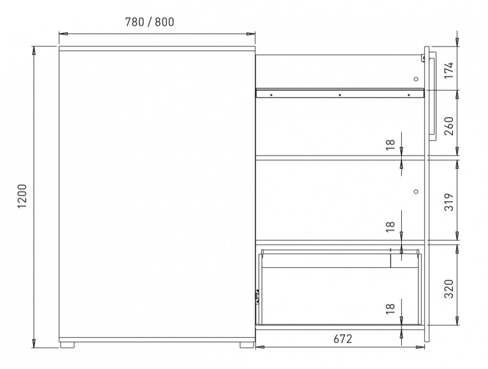 Kaapissa on markkinoiden parhaat liukumekanismit: kaappi aukeaa erittäin kevyesti liukuen suoraan eteenpäin ja näin siitä on kätevää ottaa mappeja. Kiinni työnnettäessä ovessa on pohjavaimennus, jolloin se sulkeutuu pehmeästi. Lisäksi BOXI apteekkarinkaapissa on pohjassa säätötassut, joilla voi tasata lattian epätasaisuuksia.