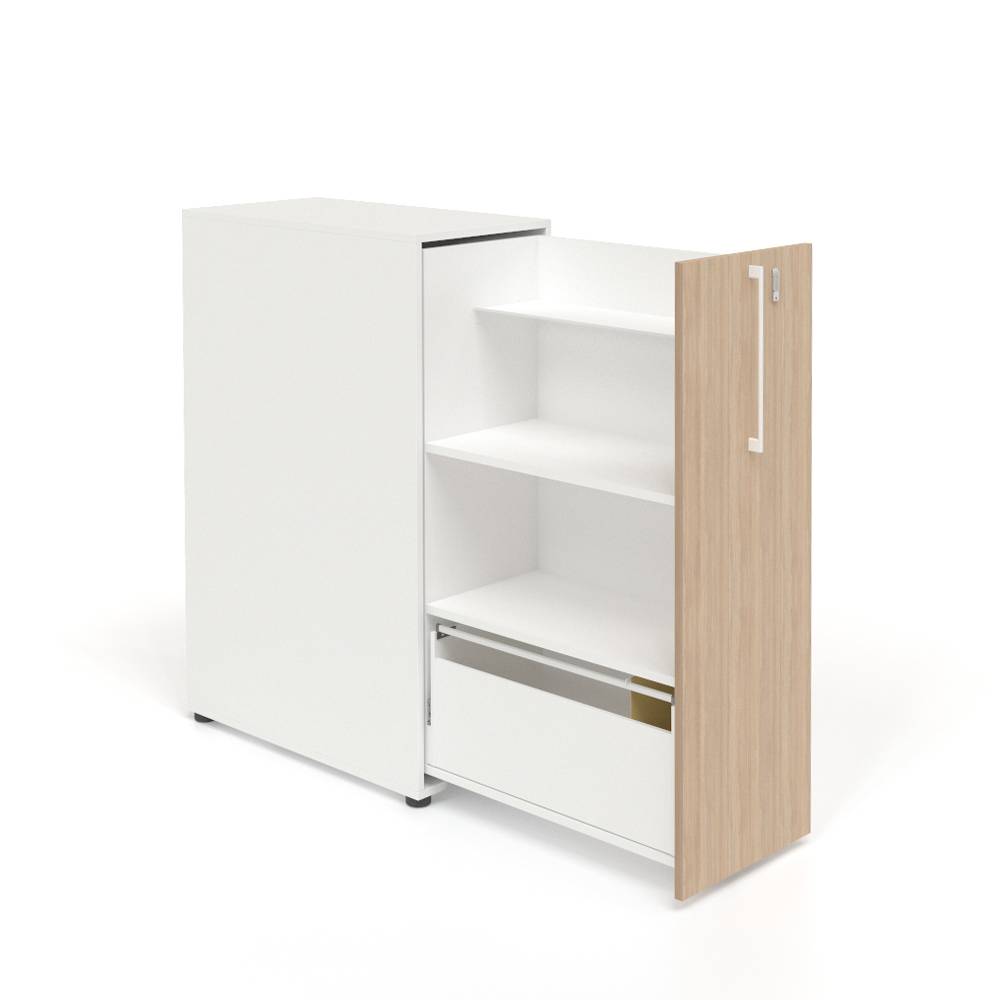 BOXI kalustesarja tarjoaa edullisen ja tyylikkään ratkaisun nykyajan moderniin toimistoon. BOXI apteekkarinkaappi on helppohoitoista ja huoletonta matalapainelaminaattia.