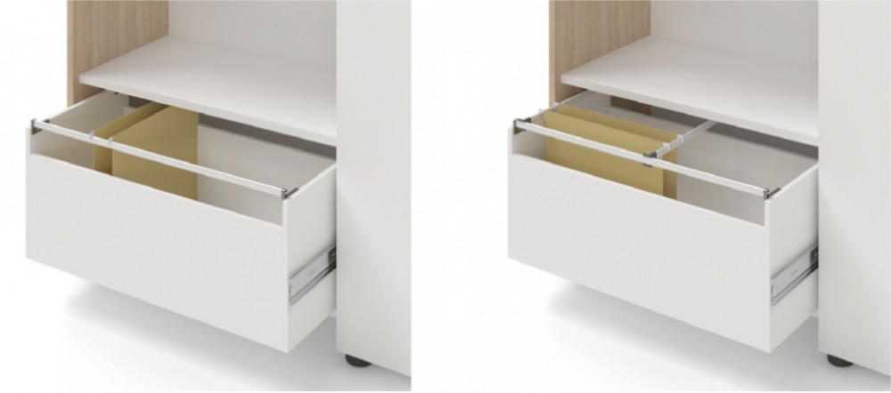 Kaapissa on joko 2 hyllytasoa mappikorkeudessa ja alalaatikko (sopii riippukansioille mutta myös käsilaukulle tai muille henk.koht. tavaroille) tai 1 ylähylly ja 2 pientä laatikkoa. Lisäksi laatikkojen päällä, alla ja sivulla lasku- ja säilytystilaa. Kaappi on lukittava ja mukana tulee 2 avainta. Kaapin kuormitus on max 50 kg.
