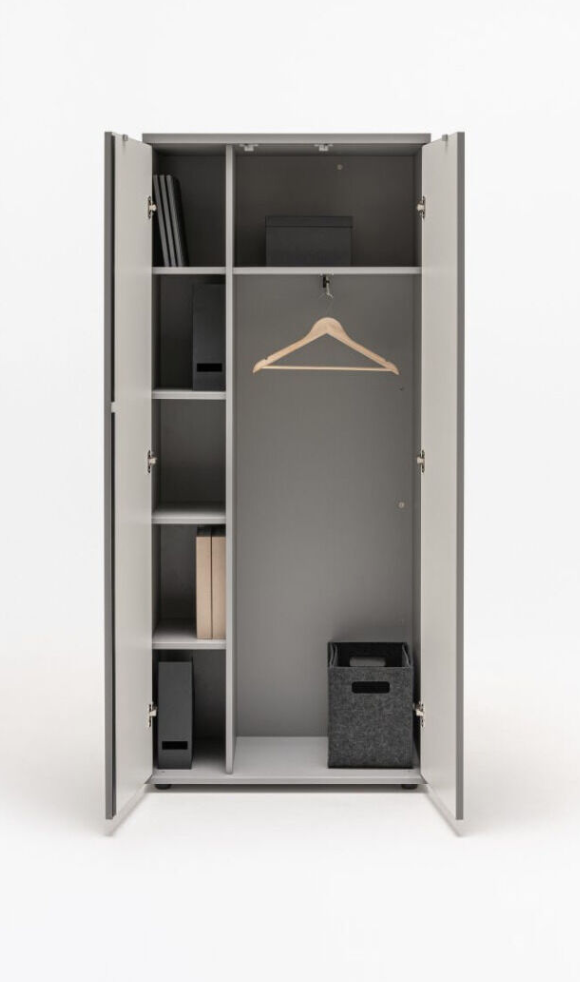 Kaapin sisällä on liukuva vaateteline ja hyllyjä, jotka tekevät siitä käytännöllisen vaihtoehdon arjen käyttöön. Push-to-Open -järjestelmä ja patenttilukko varmistavat helpon ja turvallisen käytön. Trendikkäät sävyt mahdollistavat yhtenäisen ilmeen muiden Color-malliston kalusteiden kanssa.